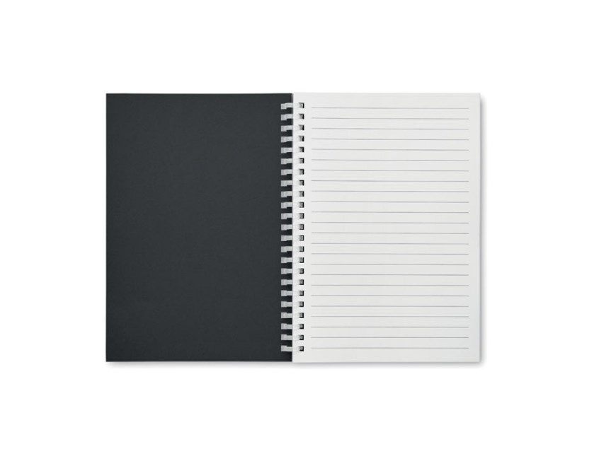 Обложка из переработанного картона придает блокноту особый шарм и подчеркивает его уникальность. Каждый экземпляр словно рассказывает свою историю, напоминая о важности бережного отношения к окружающей среде. Черный цвет обложки добавляет элегантности и универсальности, делая блокнот уместным как в офисе, так и в творческой мастерской.