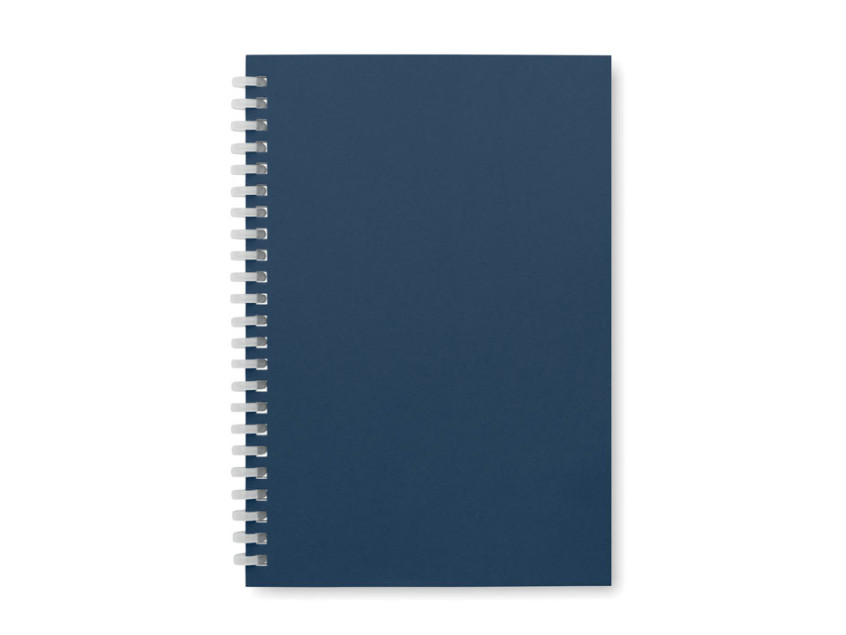 Блокнот A5 в обложке из переработанного картона с кольцевым переплетом. 160 линованных страниц из переработанной бумаги (80 листов).