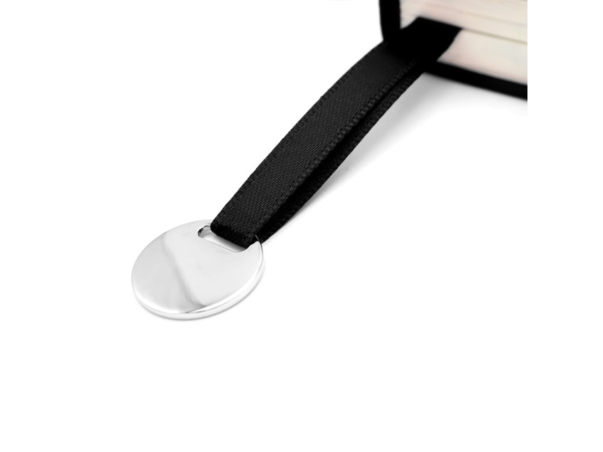 Ляссе и каптал блокнота соответствует цвету обложки. На конце ляссе присутствует металлический жетон, куда можно заказать гравировку логотипа организации.