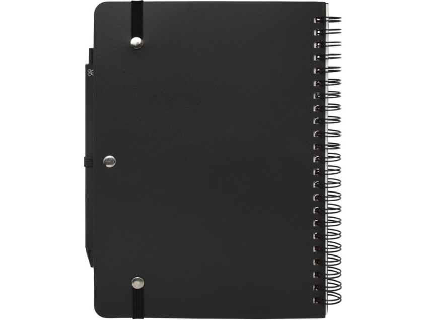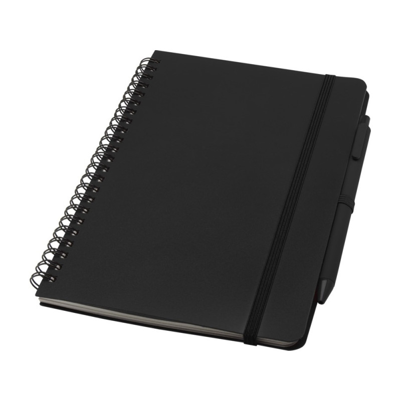 Блокнот Thalaasa формата A5 в твердой обложке изготовлен из переработанного океанического пластика и содержит 80 линованных листов кремовой бумаги плотностью 70 г/м². Блокнот имеет закругленные углы, эластичную застежку и петлю для ручки. Шариковая ручка с черными чернилами также изготовлена из переработанного океанического пластика. Длина непрерывной линии: 1000 метров. Размер пера: 1,0 мм.