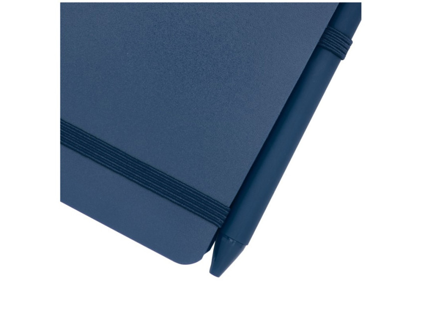 Блокнот Thalaasa формата А6 в твердой обложке изготовлен из переработанного океанического пластика и содержит 80 линованных листов кремовой бумаги плотностью 70 г/м². Блокнот имеет закругленные углы, эластичную застежку и петлю для ручки. Шариковая ручка с черными чернилами также изготовлена из переработанного океанического пластика. Длина непрерывной линии: 1000 метров. Размер пера: 1,0 мм.