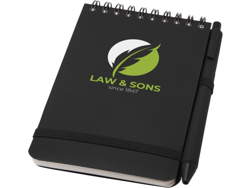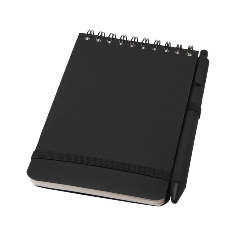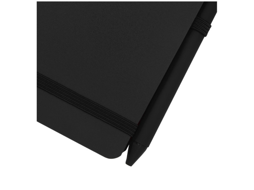 Блокнот Thalaasa формата А6 в твердой обложке изготовлен из переработанного океанического пластика и содержит 80 линованных листов кремовой бумаги плотностью 70 г/м². Блокнот имеет закругленные углы, эластичную застежку и петлю для ручки. Шариковая ручка с черными чернилами также изготовлена из переработанного океанического пластика. Длина непрерывной линии: 1000 метров. Размер пера: 1,0 мм.
