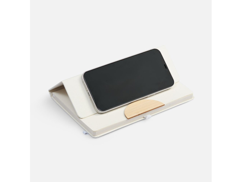 Но особенно практичным Enviro делает его оригинальная обложка со складной конструкцией: благодаря ей и деревяной вставке сбоку блокнот удобно использовать как подставку для телефона.