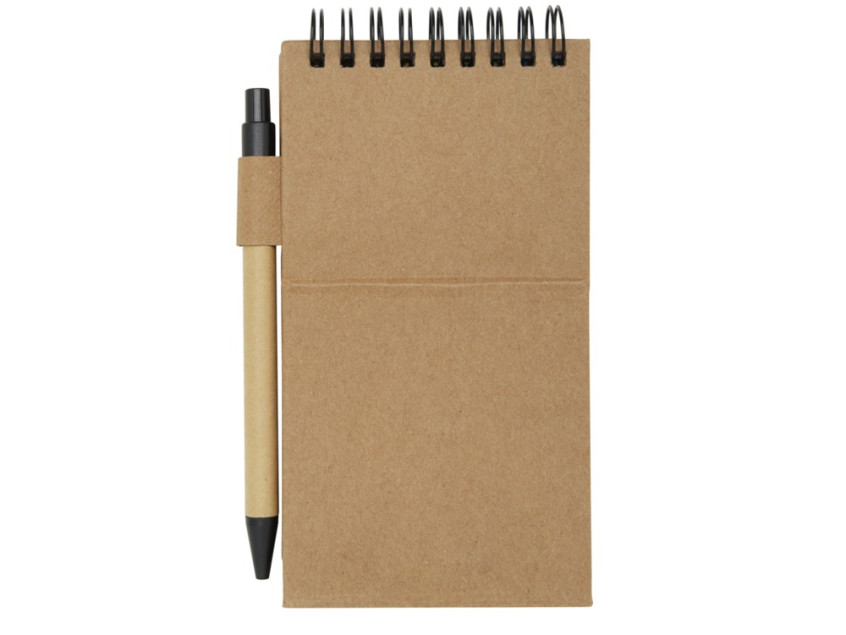 Липкий блокнот с шариковой ручкой. В блокноте 30 листов белой линованной бумаги плотностью 70 г/м2 (8 x 12 см). В комплект также входят 25 разноцветных (5 x 1,2 см) и 25 желтых (7,5 x 7,5 см) клейких листочков, оба типа на бумаге плотностью 70 г/м2. Корпус шариковой ручки изготовлен из переработанной бумаги. Цвет чернил: черный. Длина непрерывной линии: 1000 метров. Размер пера: 1,00 мм.