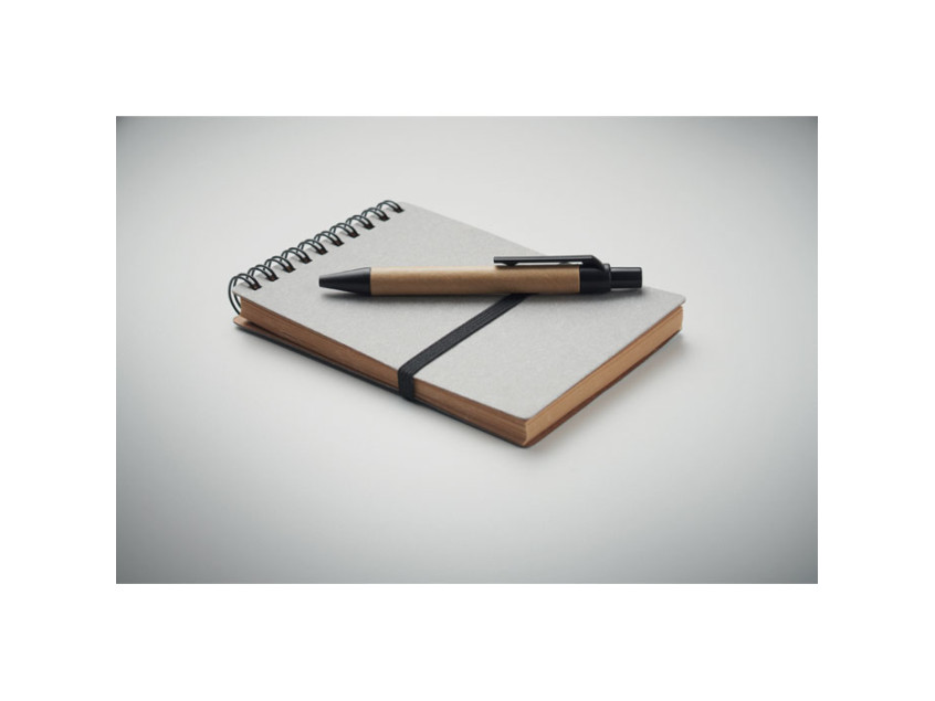 Каждая деталь этого блокнота продумана до мелочей. Двойная проволока обеспечивает надежность, а 140 линованных страниц из переработанной бумаги (70 листов) станут вашим пространством для вдохновения. В комплекте идет кнопочная шариковая ручка из переработанных материалов с синими чернилами, которые оставляют четкий и аккуратный след. Эластичный ремешок и держатель для ручки делают блокнот удобным для ежедневного использования, а также защищают его содержимое от случайных повреждений.