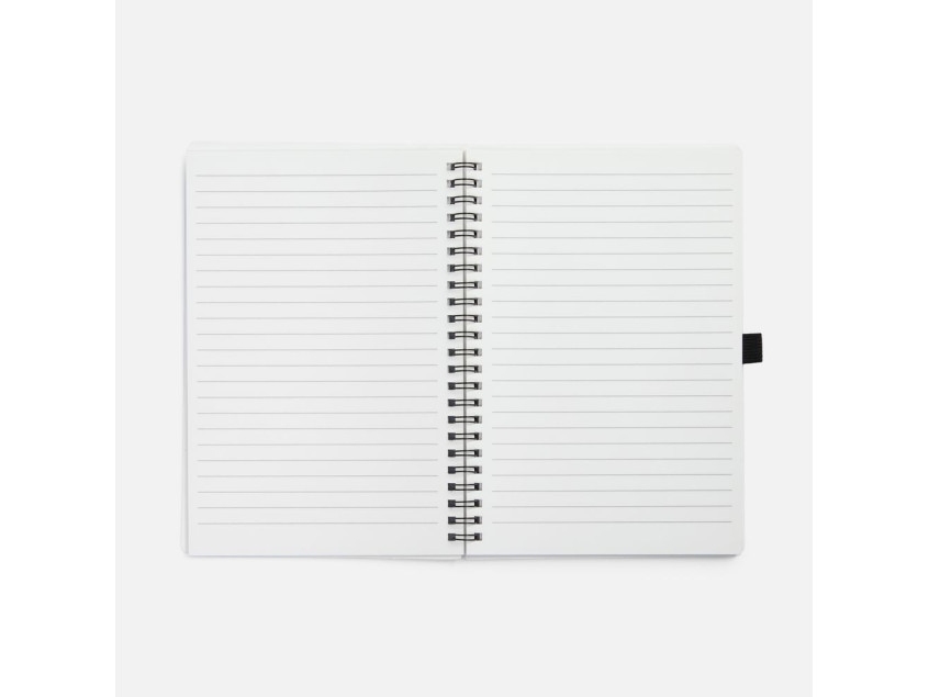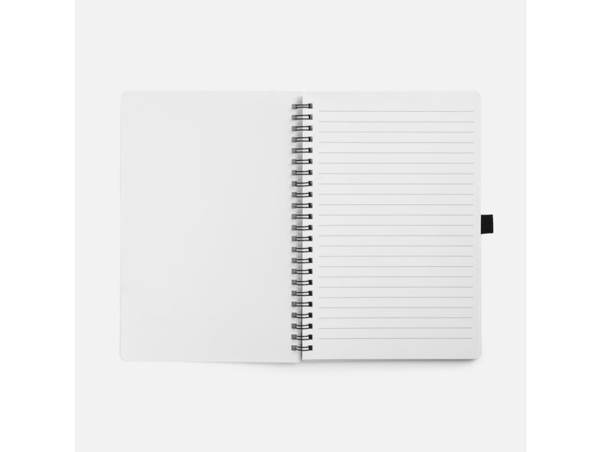 Блокнот из каменной бумаги на пружине с резинкой для ручки.