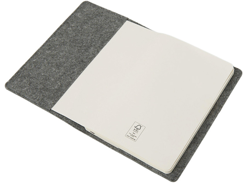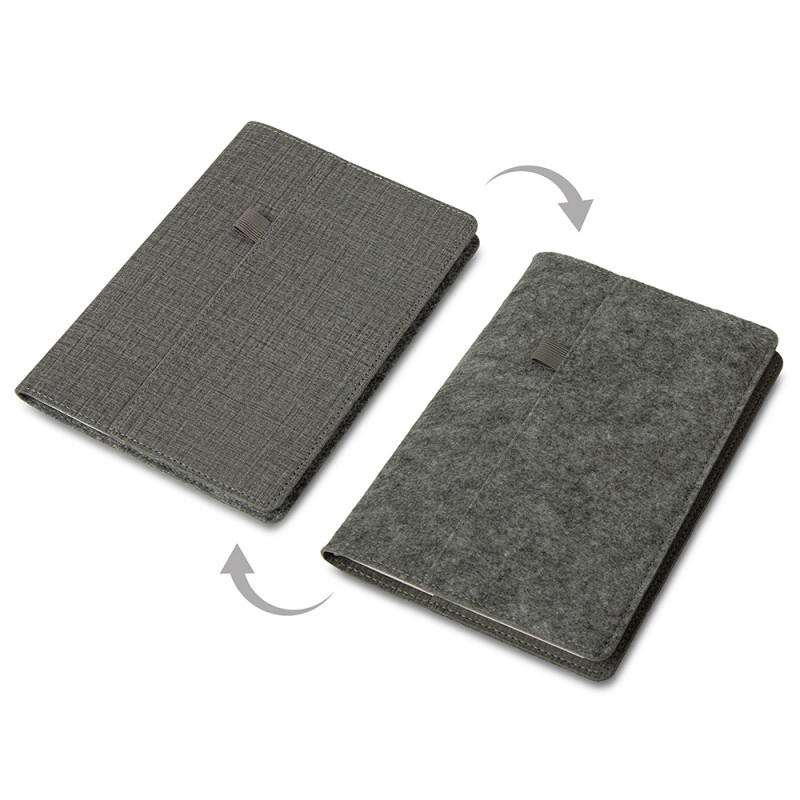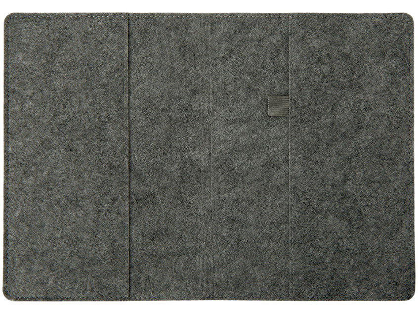 Это портфолио адаптируется под ваш стиль и настроение. Одна сторона — серая экокожа, другая — уютный фетр из переработанных материалов. С обеих сторон вы найдёте карманы для мелочей и петли для резинки. Внутри — сменный блок из 80 листов кремовой бумаги с ляссе, что делает его удобным и практичным.
