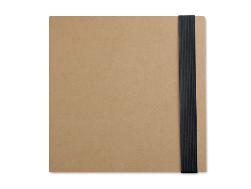 Блокнот с ручкой из переработанной бумаги с двумя блоками стикеров и разноцветными закладками.