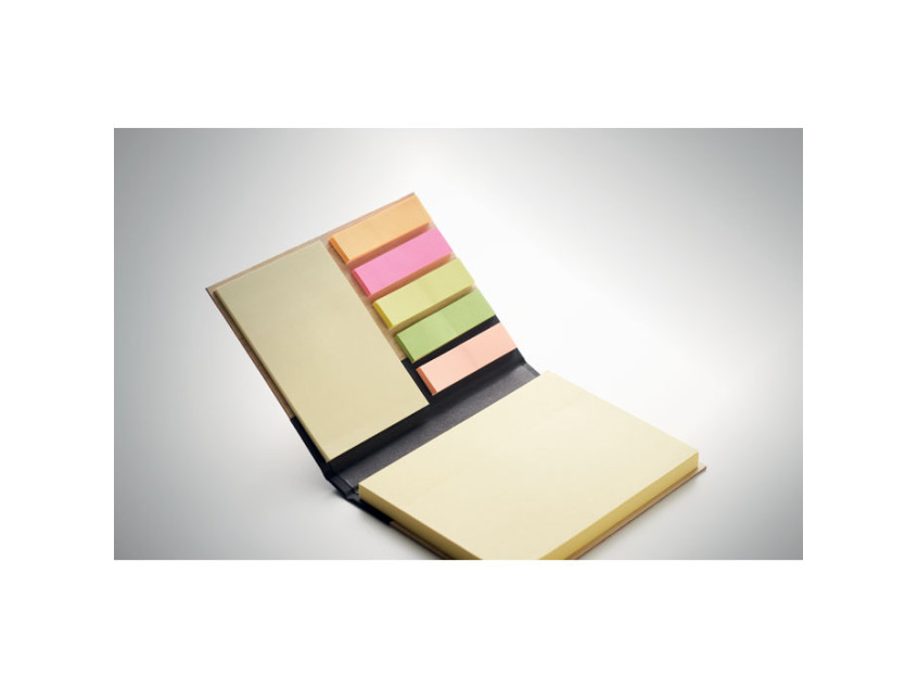 Набор стикеров для заметок в бамбуковой обложке. 3 вида стикеров: большого и среднего формата желтого цвета и маленькие стикеры в 5 разных цветах.