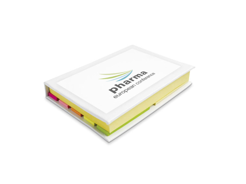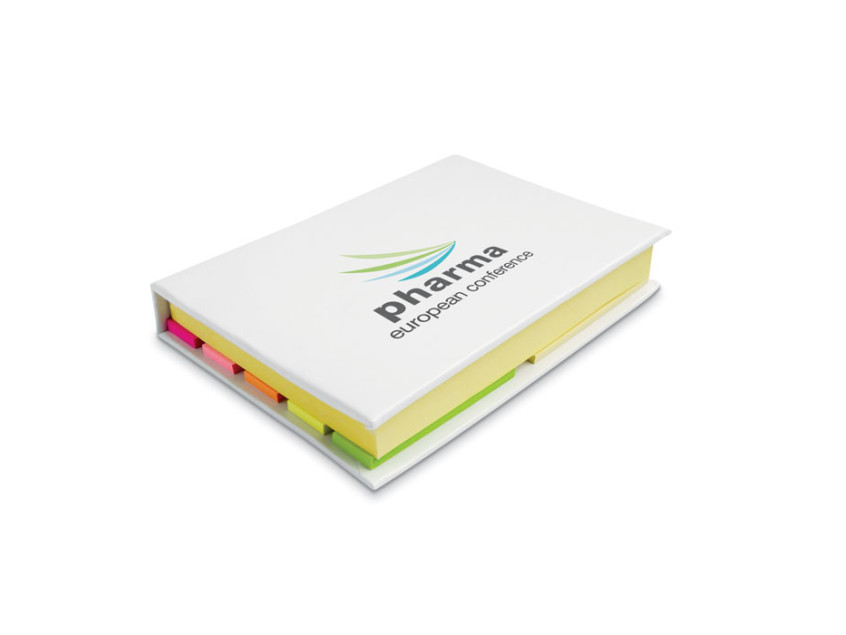 Набор из 5 элементов, включающий большие и средние желтые блоки для заметок и маленькие яркие закладки.
