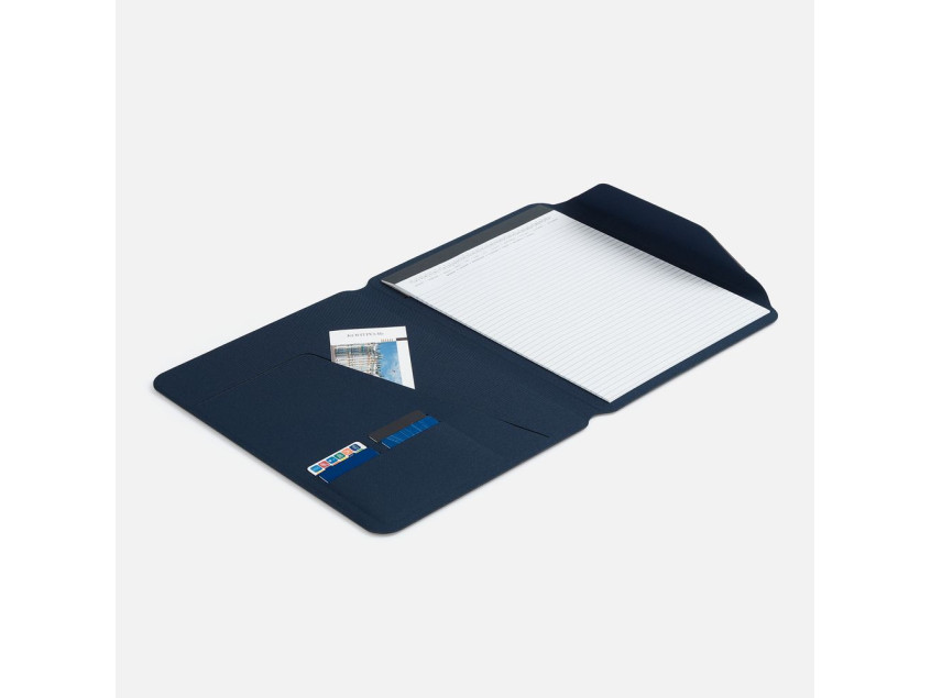 В папке множество карманов для эффективной организации важных бумаг, карточек и визиток — чтобы всегда иметь самое необходимое по рукой. Папка надежно закрывается на магнитный клапан с контрастной деревянной вставкой.