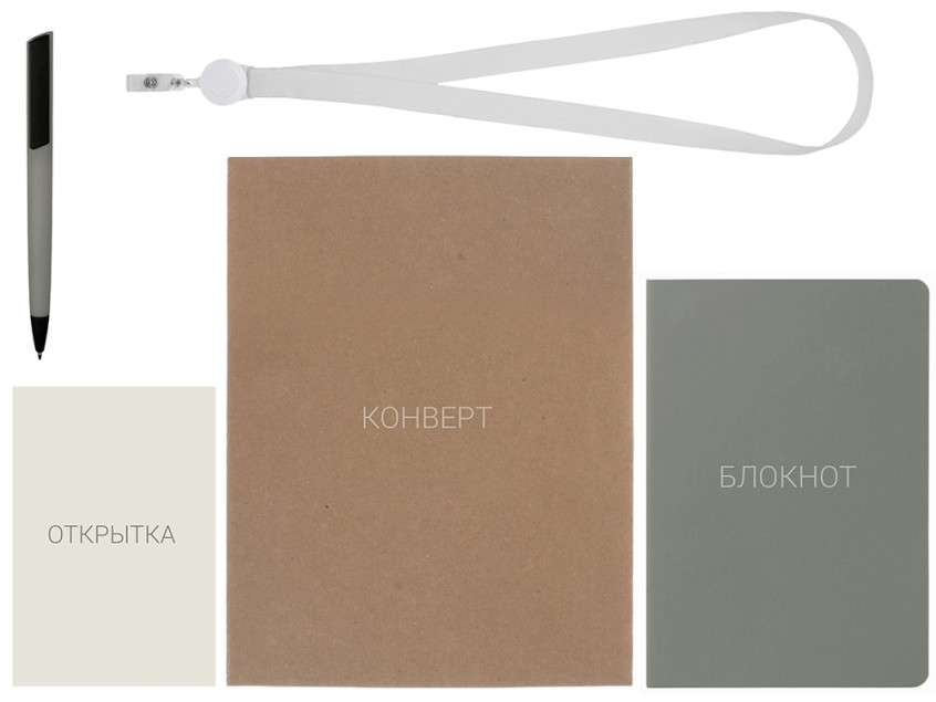 | Материал: | блокнот - искусственная кожа, открытка - бумага, пакет - картон, ручка - пластик с покрытием soft-touch, ланьярд с ретрактором - полиэстер, металл, пластик. |