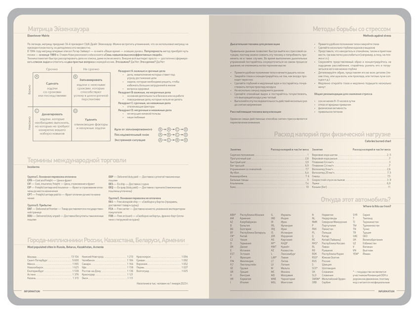 Элегантный датированный ежедневник Megapolis Color от Bruno Visconti идеально подходит для организации рабочего дня и ведения важных записей. Обложка из искусственной кожи с приятным на ощупь покрытием Soft Touch и обрез в тон создают гармоничный образ. Внутри – блок из бежевой бумаги плотностью 70 г/кв.м с разделами для планирования, календарем на 2026-2027 год и полезной справочной информацией. Для удобства навигации предусмотрена закладка-ляссе шириной 7 мм в цвет обложки.