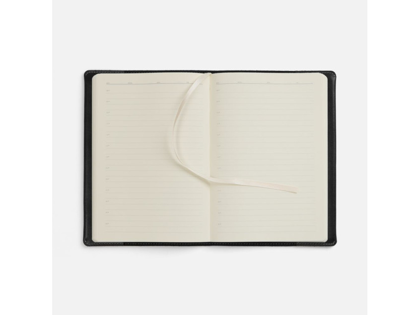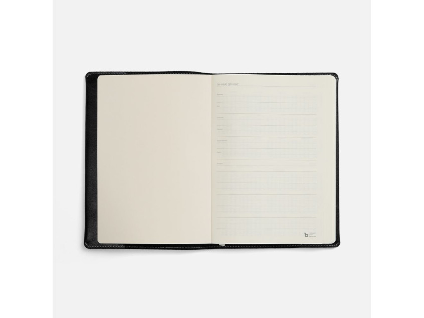 Ежедневник в мягкой суперобложке из натуральной кожи. Дополнен ляссе кремового цвета. Упакован в индивидуальную коробку.