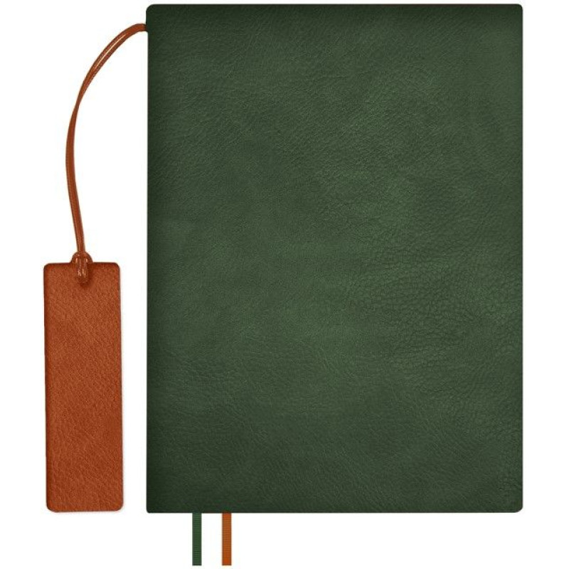 Ежедневник с гибкой обложкой и закладкой из искусственной кожи, дополнен капталом и двойным ляссе.