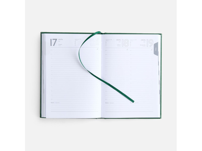 Ежедневник с твердой обложкой с поролоном из искусственной кожи Sarif, дополнен декоративной строчкой, капталом и ляссе в цвет ежедневника.