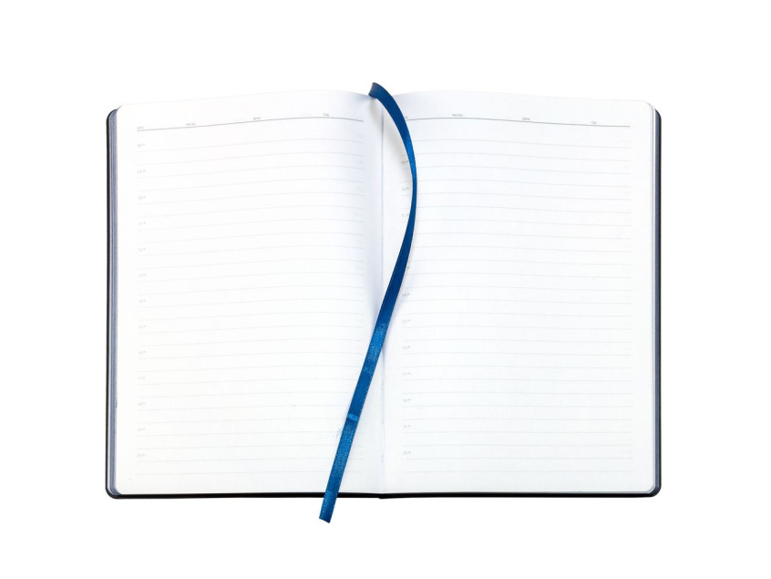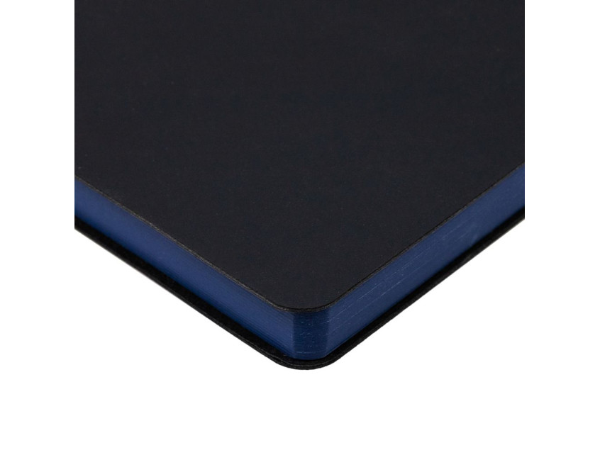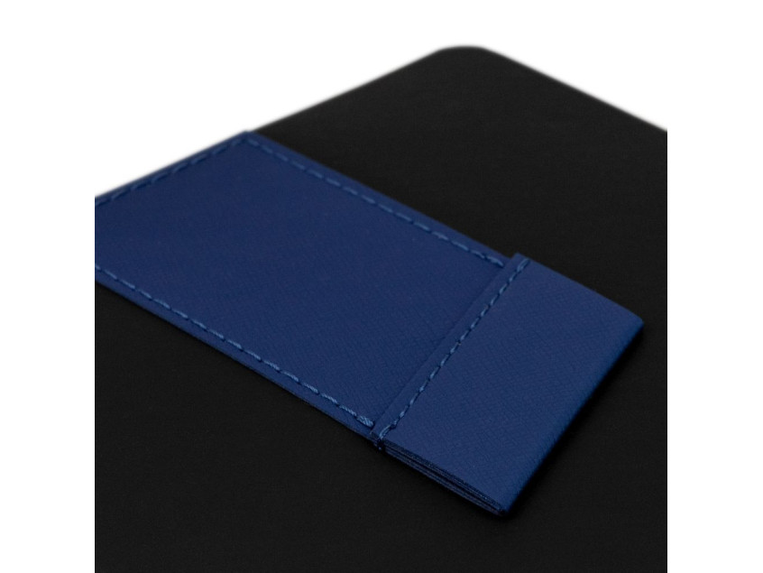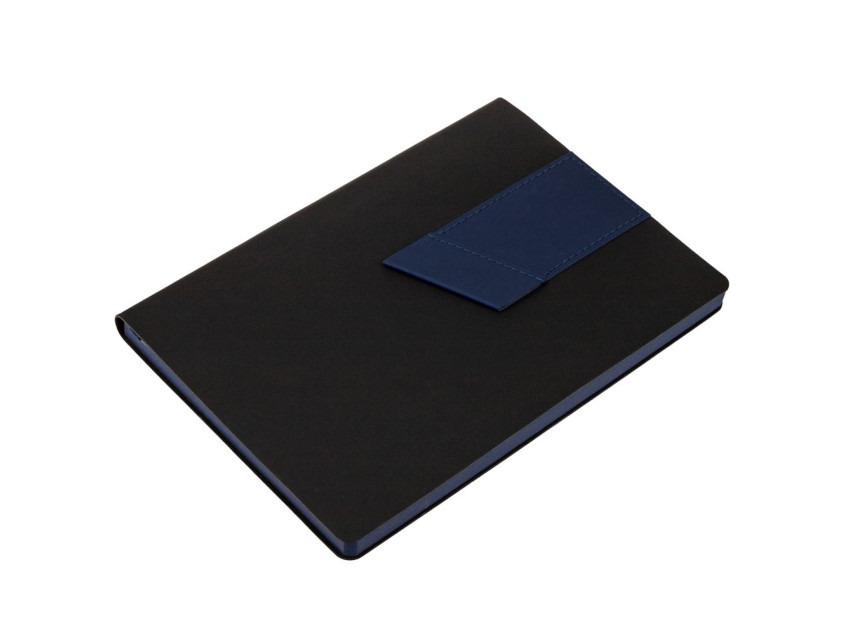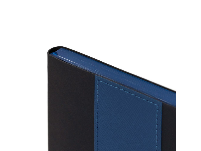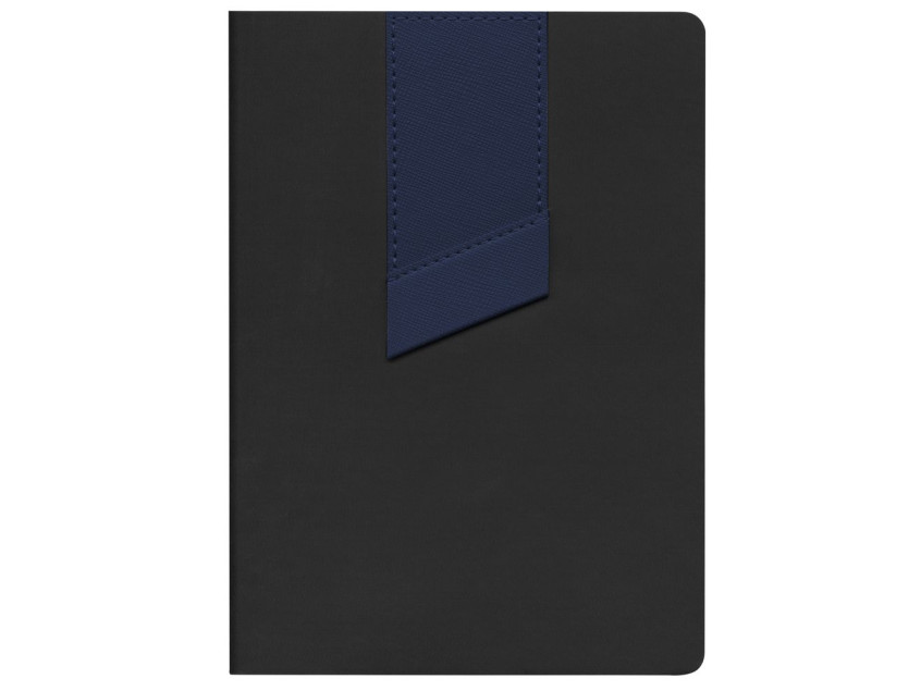 Ежедневник с гибкой обложкой, выполнен из материала Soft Touch, черный АА, дополнен петлей для ручки из материала Nice Touch, синий НН и цветным ляссе.