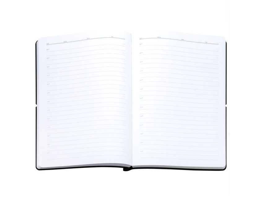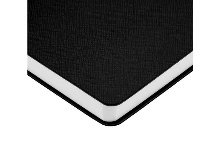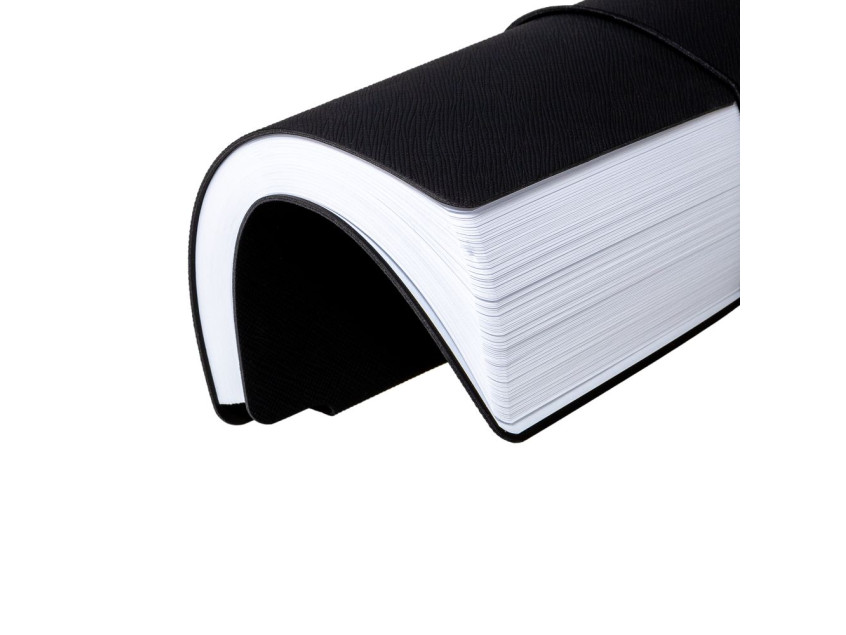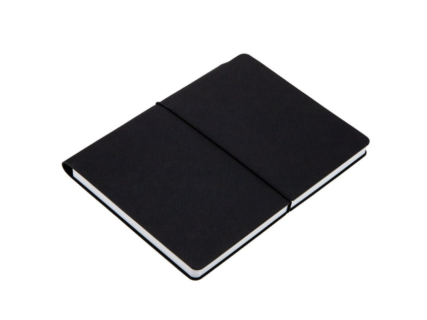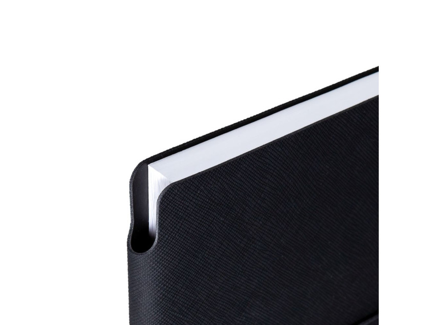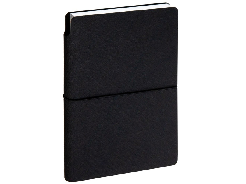 Ежедневник с гибкой обложкой выполнена из материала Nice Touch, черный и Latte, черный (внутренняя часть обложки), дополнен горизонтальной резинкой в цвет обложки. Внутри корешка — специальное место для крепления ручки размером до 15х1 см.