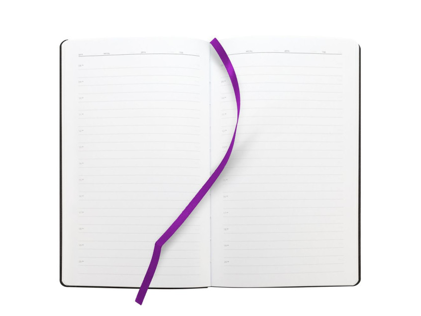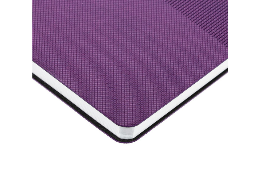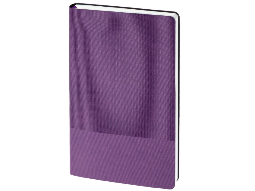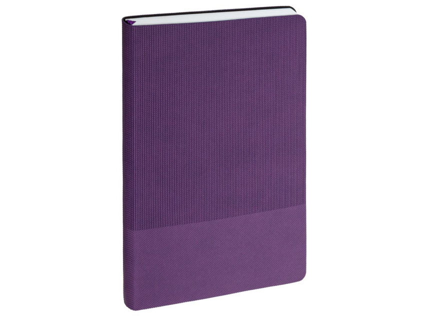 Ежедневник с гибкой обложкой, выполнен из материала Canyon, фиолетовый UU, дополнен ляссе в цвет обложки. Блинтовое тиснение на обложке создает эффект вязаного полотна.