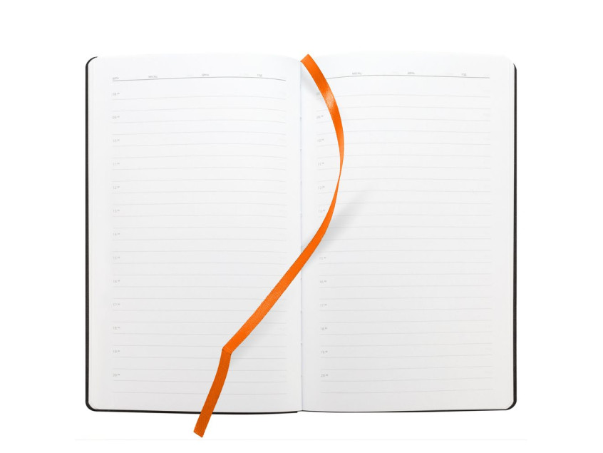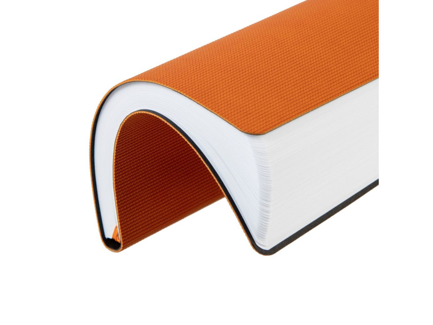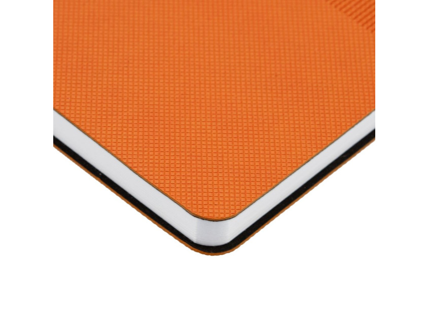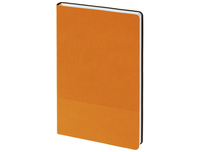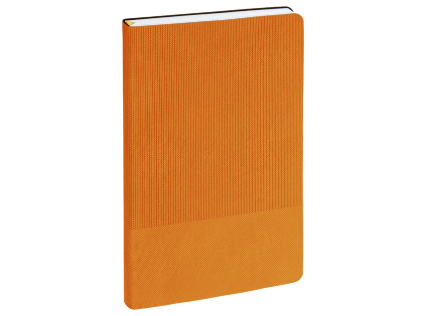 Ежедневник с гибкой обложкой, выполнен из материала Canyon, оранжевый ОО, дополнен ляссе в цвет обложки. Блинтовое тиснение на обложке создает эффект вязаного полотна.
