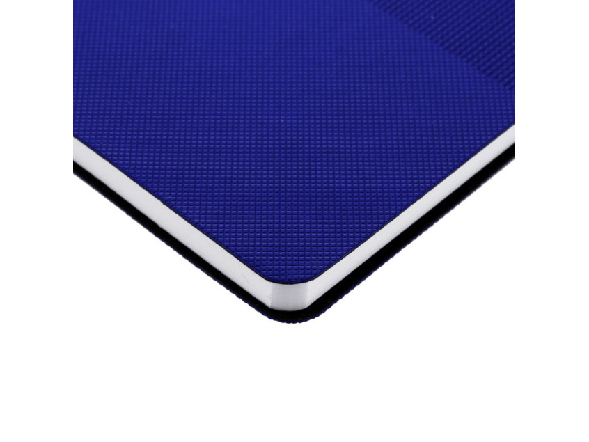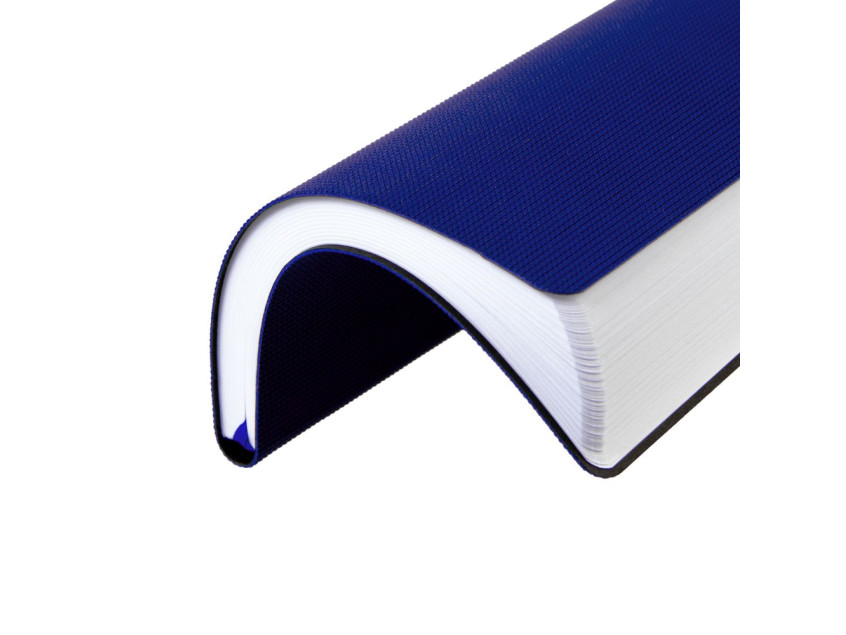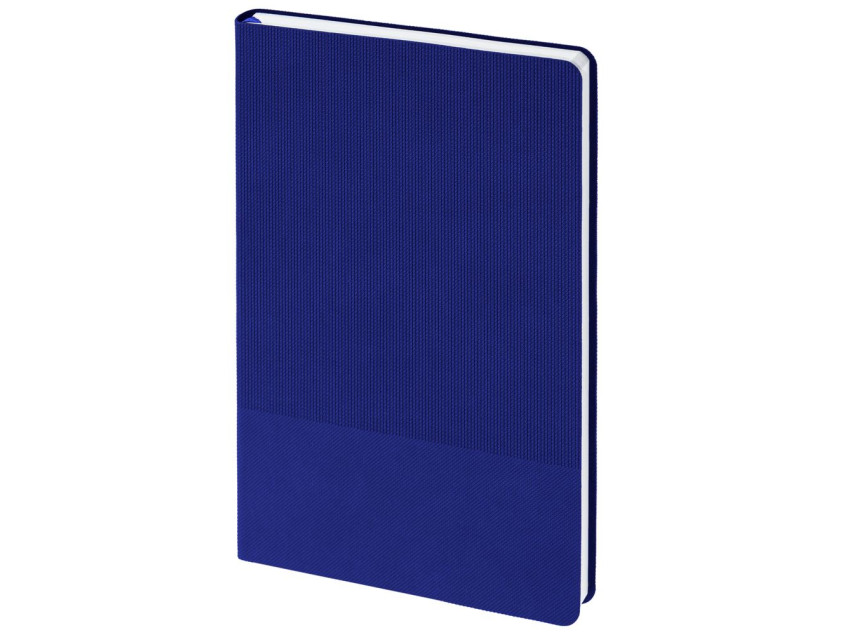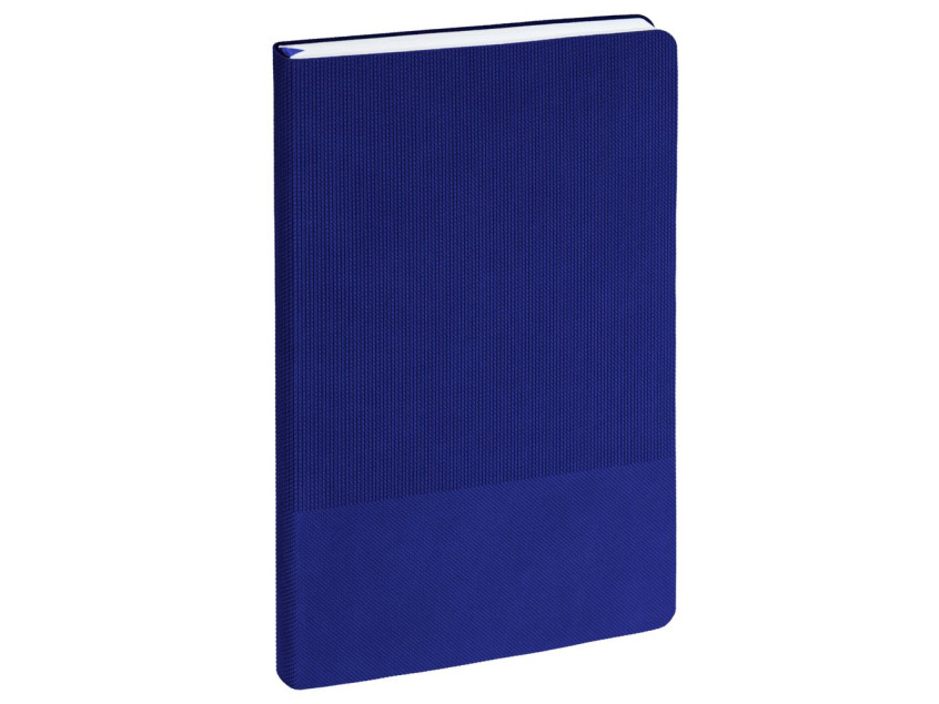 Ежедневник с гибкой обложкой, выполнен из материала Canyon, синий НН, дополнен ляссе в цвет обложки. Блинтовое тиснение на обложке создает эффект вязаного полотна.