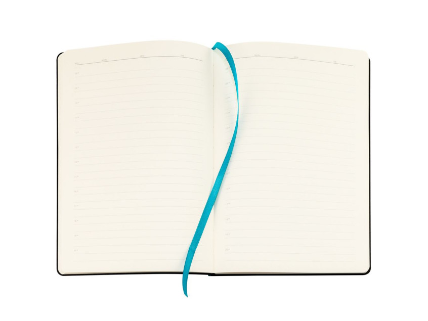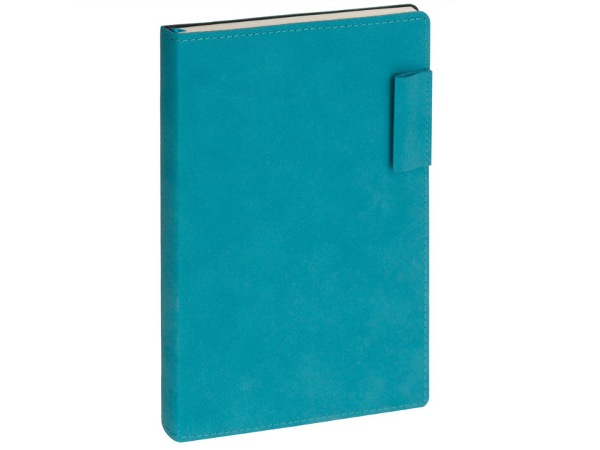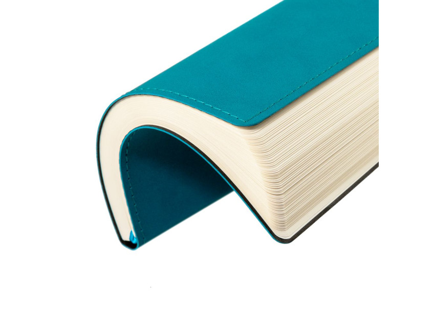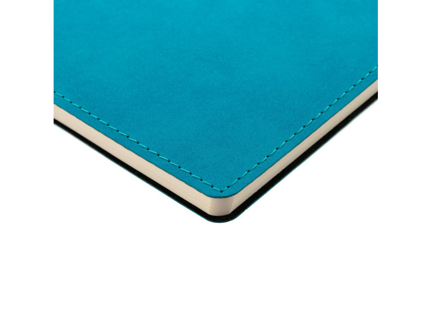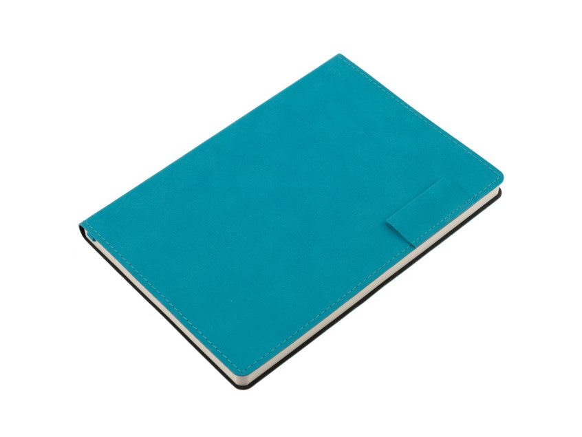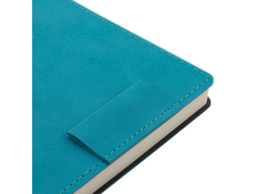 Ежедневник с гибкой обложкой, выполнен из материала Nubuck, цвет морской волны II, дополнен петлей-лейблом для ручки и ляссе в цвет материала.