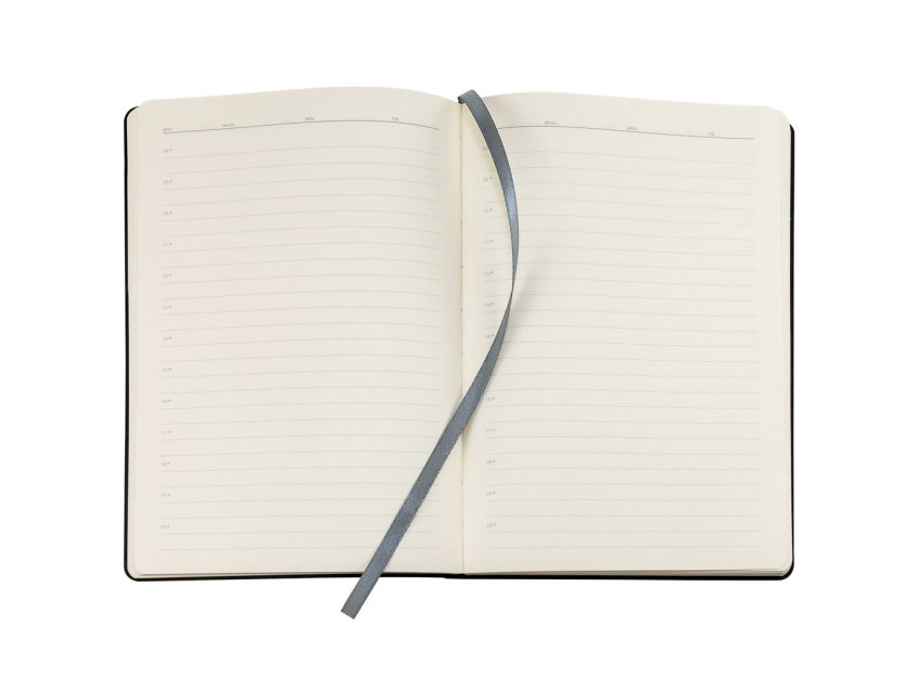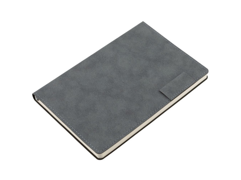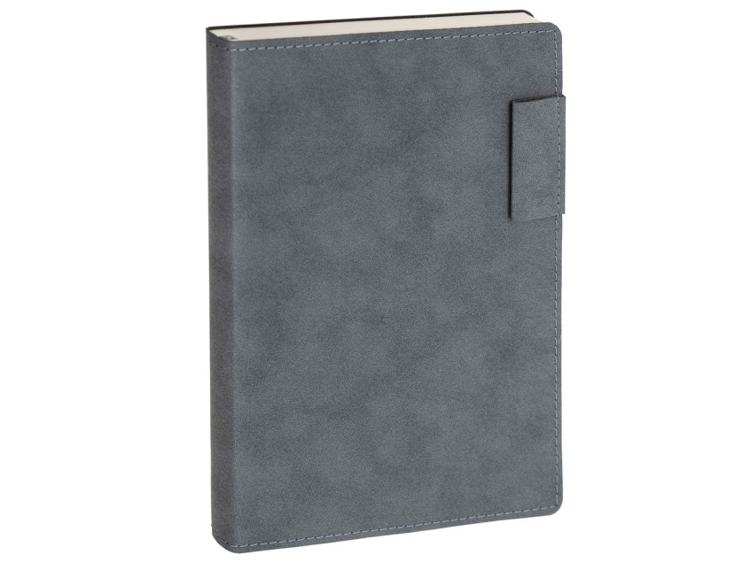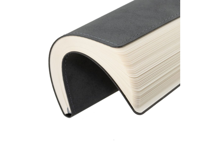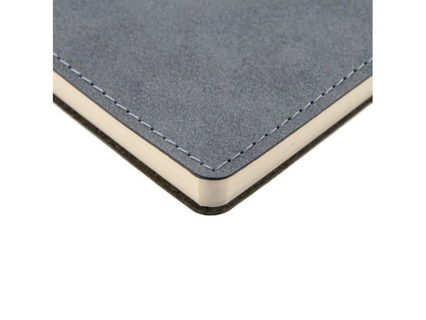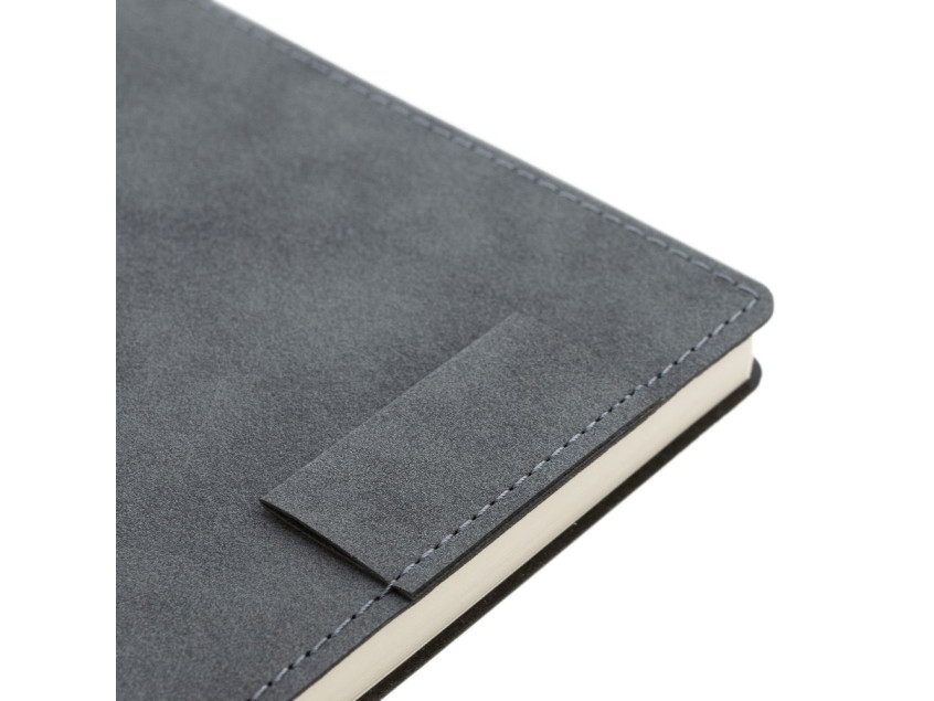 Ежедневник с гибкой обложкой, выполнен из материала Nubuck, темно-серый ЕЕ, дополнен петлей-лейблом для ручки и ляссе в цвет материала.