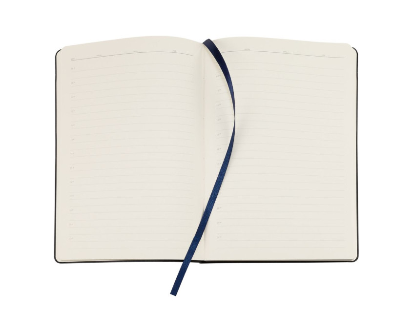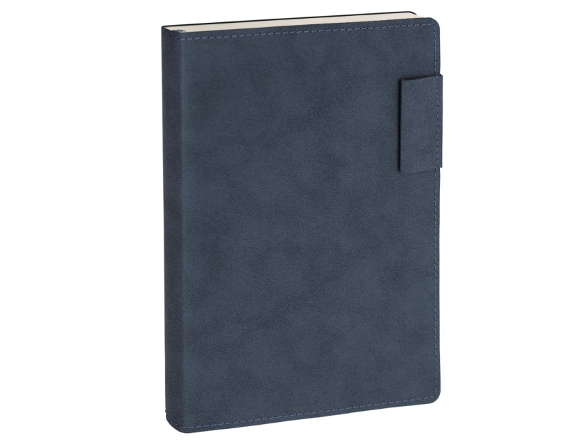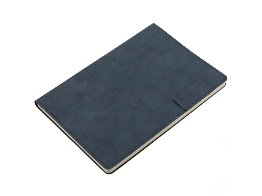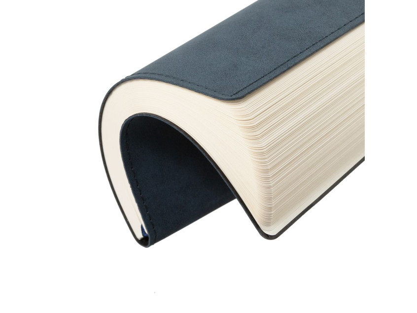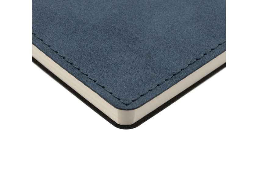 Ежедневник с гибкой обложкой, выполнен из материала Nubuck, темно-синий ХХ, дополнен петлей-лейблом для ручки и ляссе в цвет материала.