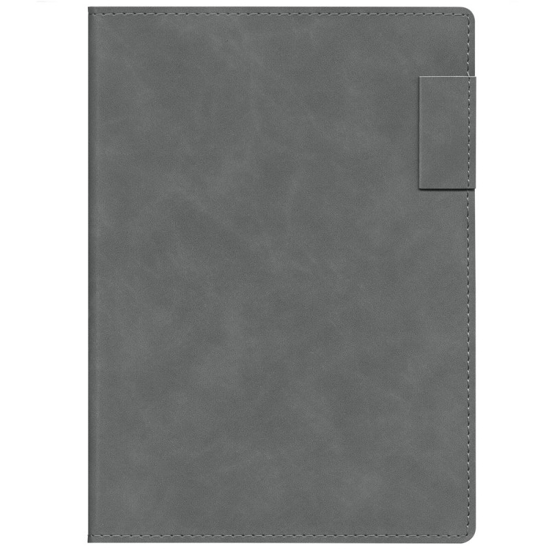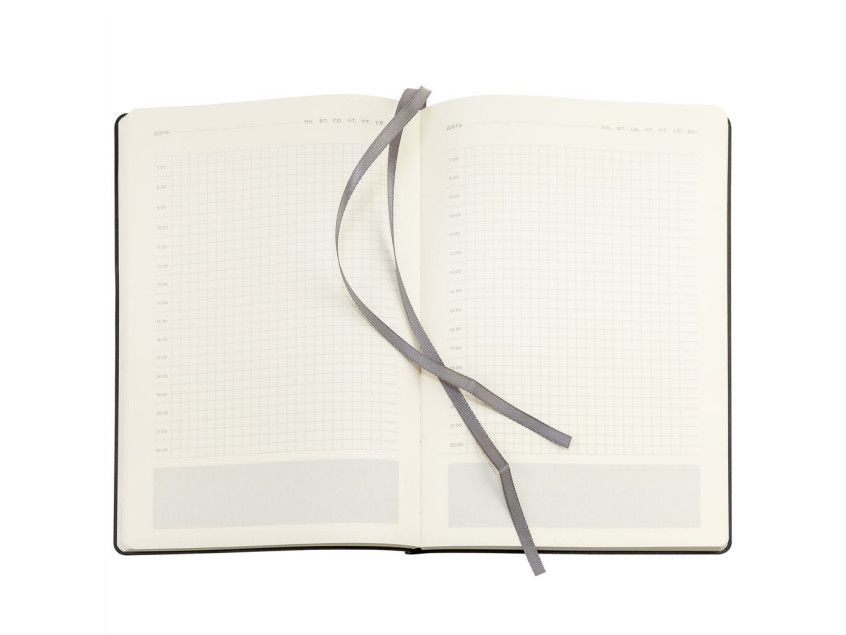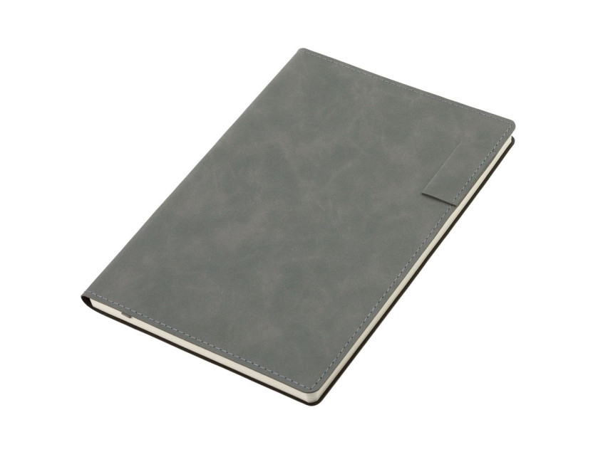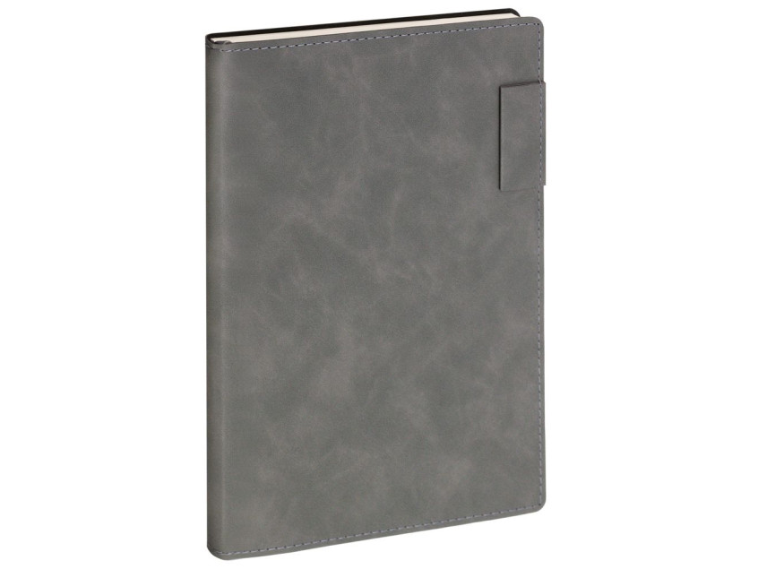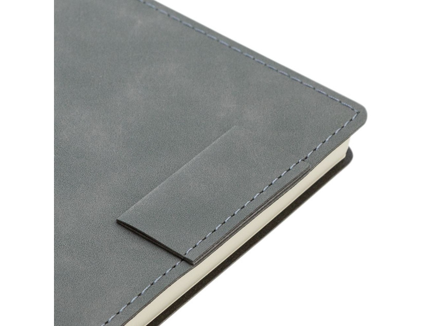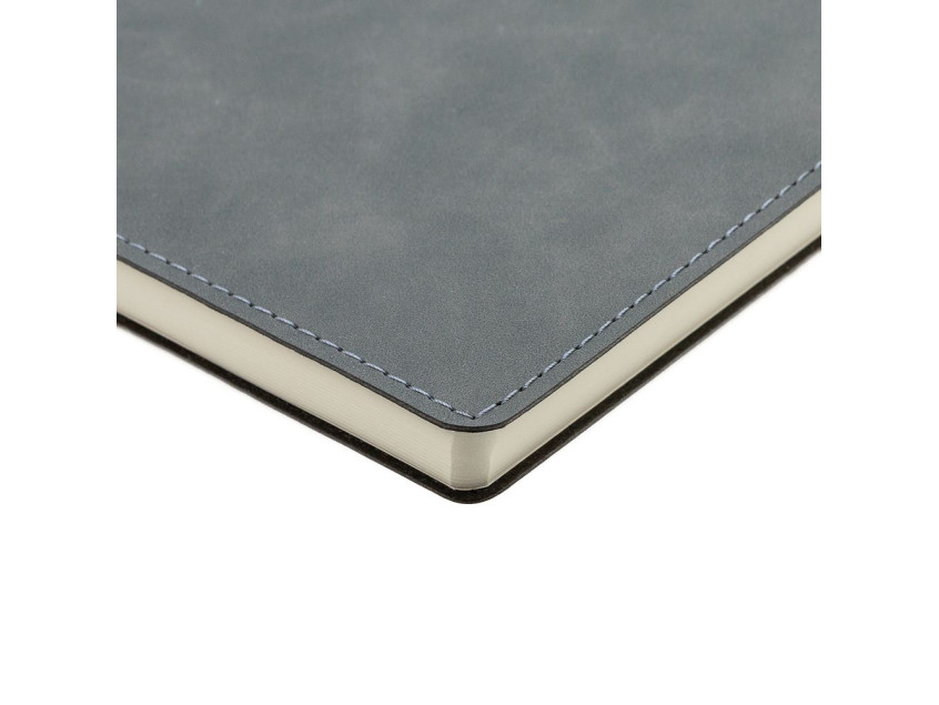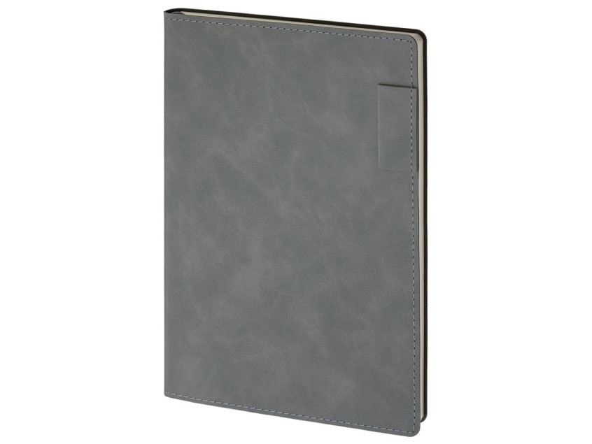 Ежедневник 17х24 см, с гибкой обложкой, выполнен из материала Nubuck Touch, темно-серый ЕЕ, дополнен петлей-лейблом для ручки и двойным ляссе в цвет материала.