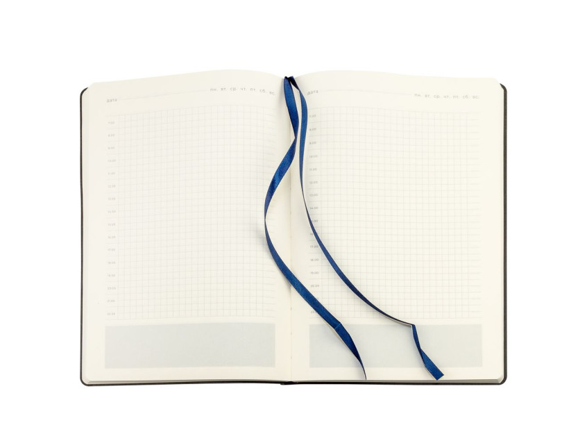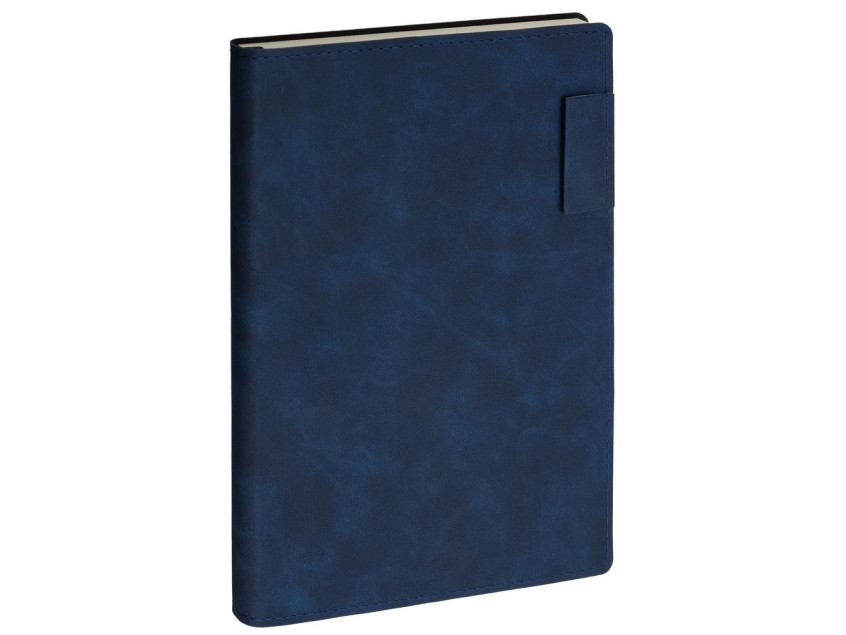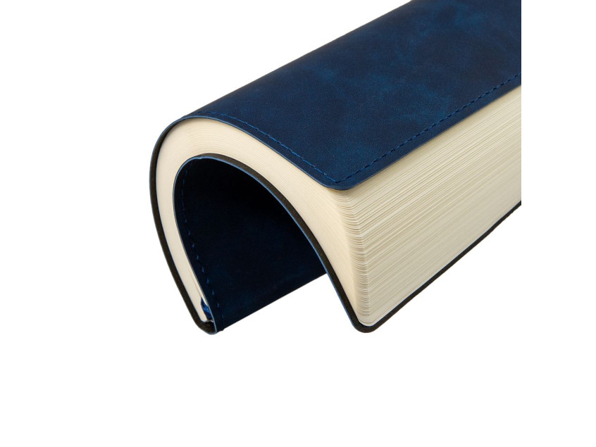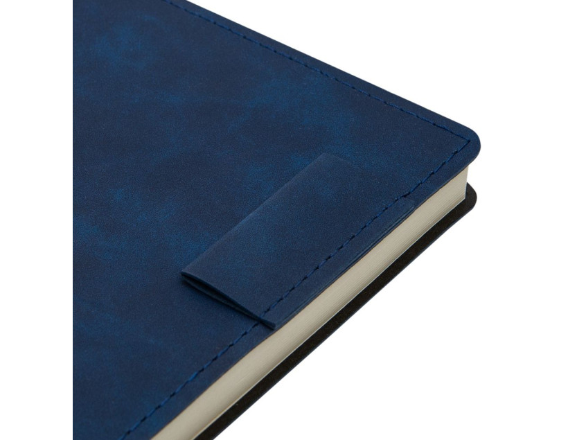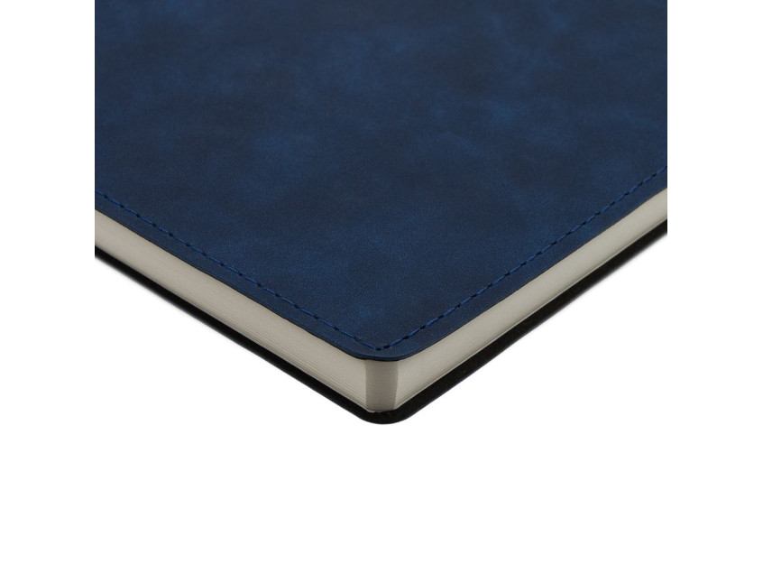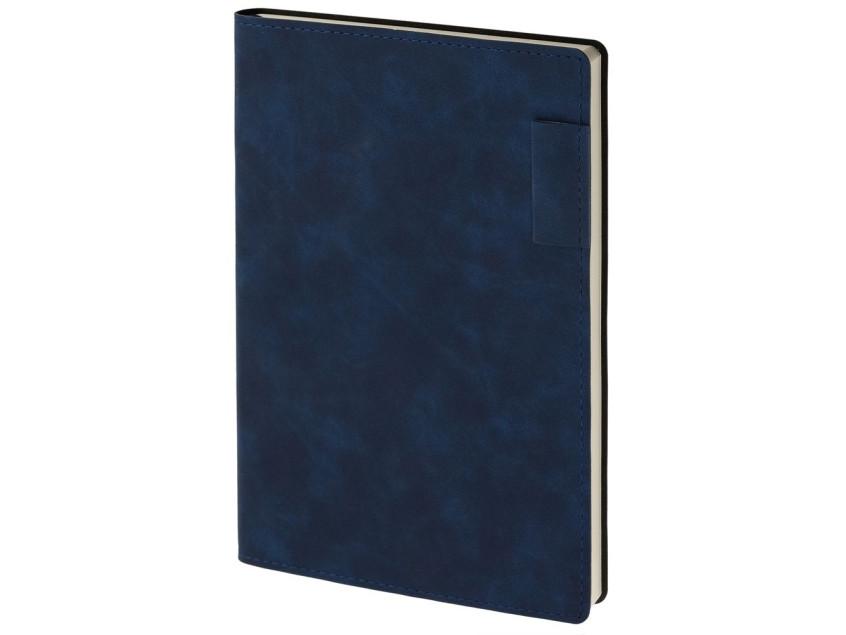 Ежедневник 17х24 см, с гибкой обложкой, выполнен из материала Nubuck Touch, темно-синий ХХ, дополнен петлей-лейблом для ручки и двойным ляссе в цвет материала.