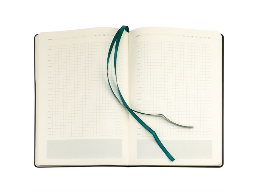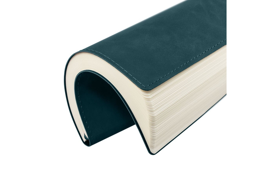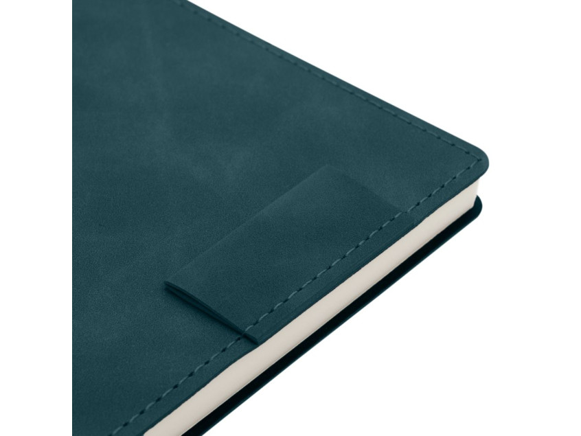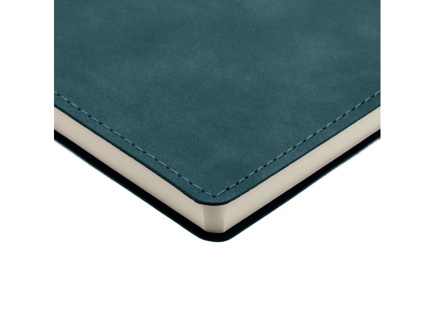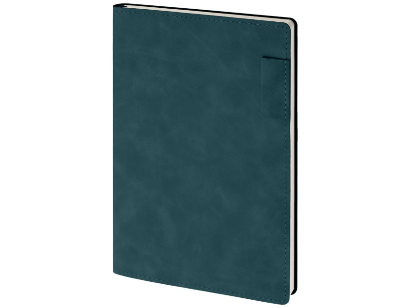 Ежедневник 17х24 см, с гибкой обложкой, выполнен из материала Nubuck Touch, темно-зеленый VV, дополнен петлей-лейблом для ручки и двойным ляссе в цвет материала.