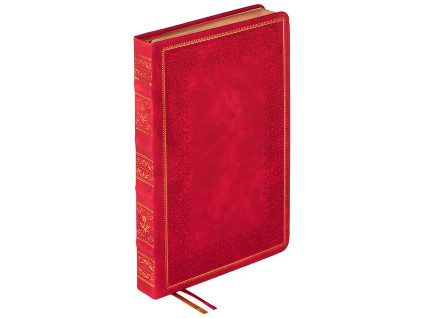 Недатированный ежедневник Royal формата А5 с твердой обложкой из искусственной кожи с имитацией нубука украшен художественным бронзовым и блинтовым тиснением. Внутри 256 страниц, выполненных из качественной бежевой бумаги в линейку плотностью 100 г/м². Два шелковых ляссе в цвет обреза блока и обложки облегчают навигацию по записям. Французский корешок дополнительно декорирован изящным бронзовым тиснением в виде виньеток. Скругленные углы обложки и блока подчеркивают стильный дизайн изделия, а блеск бронзового обреза дарит ежедневнику благородный и роскошный внешний вид.