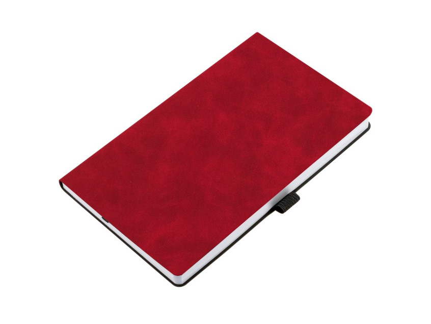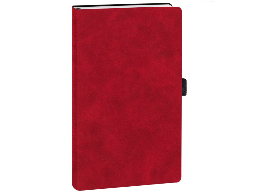 Ежедневник с гибкой обложкой, выполнен из материала Nubuck Touch, красный РР, дополнен ляссе и петлей-резинкой для ручки черного цвета.