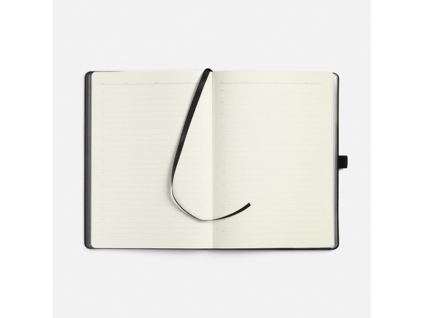Ежедневник с гибкой обложкой, выполнен из материала Nice Touch, черный АА, дополнен цветными ляссе и петлей-резинкой для ручки.