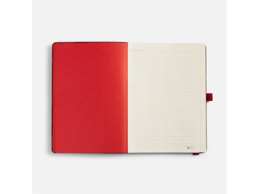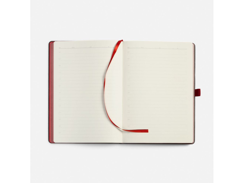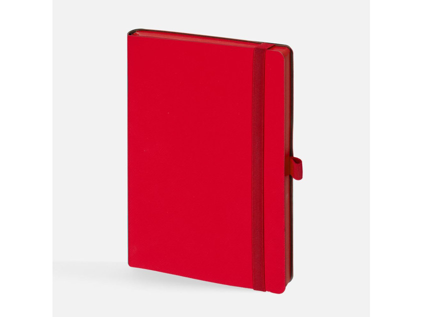 Ежедневник с гибкой обложкой, выполнен из материала Nice Touch Ultra, красный РР, дополнен цветными ляссе и петлей-резинкой для ручки.