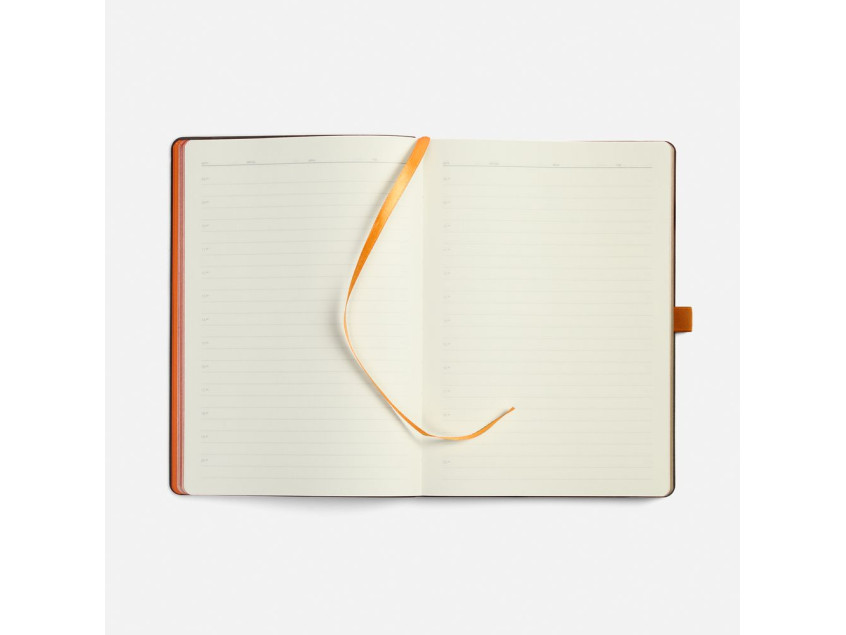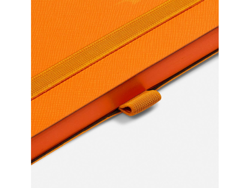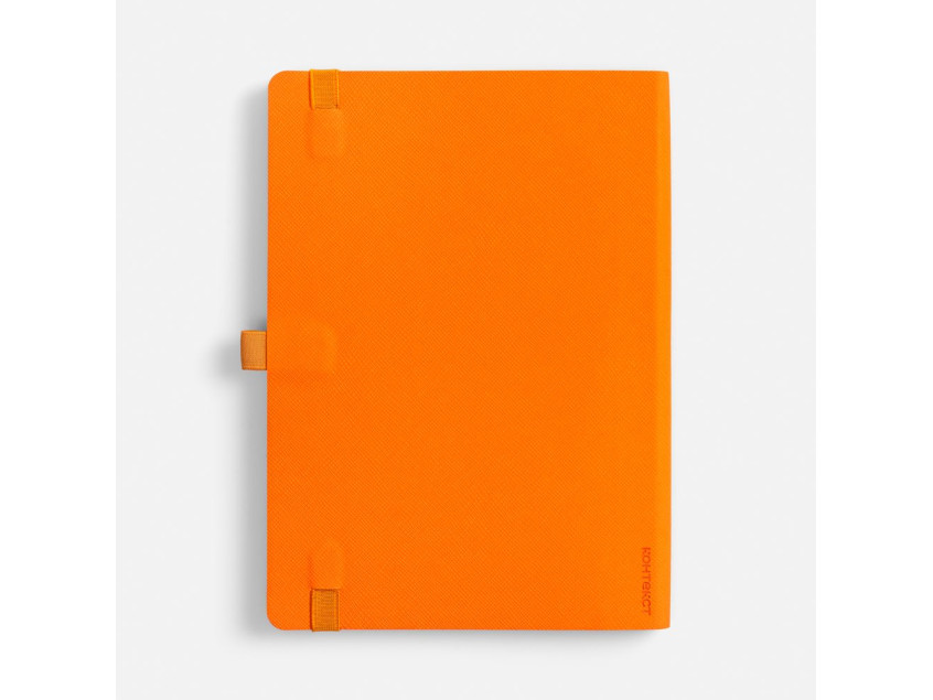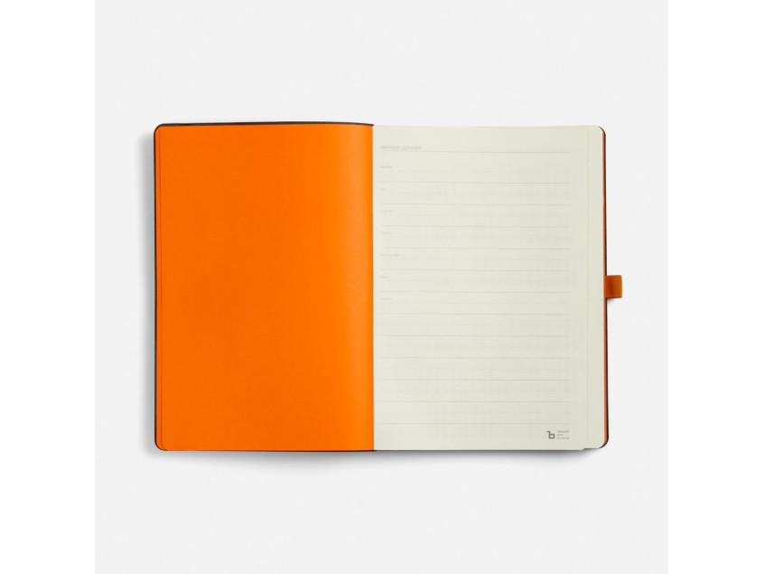 Ежедневник с гибкой обложкой, выполнен из материала Nice Touch, оранжевый ОО, дополнен цветными ляссе и петлей-резинкой для ручки.