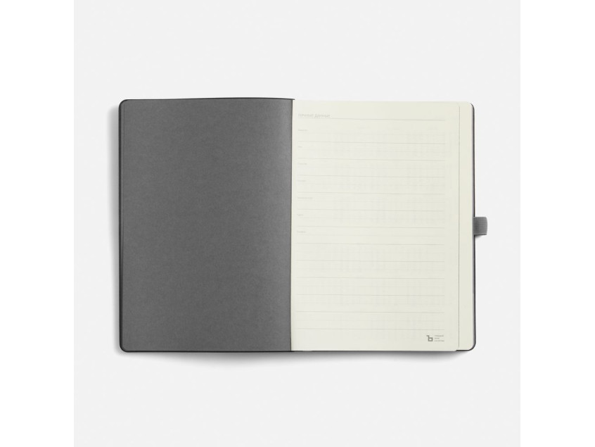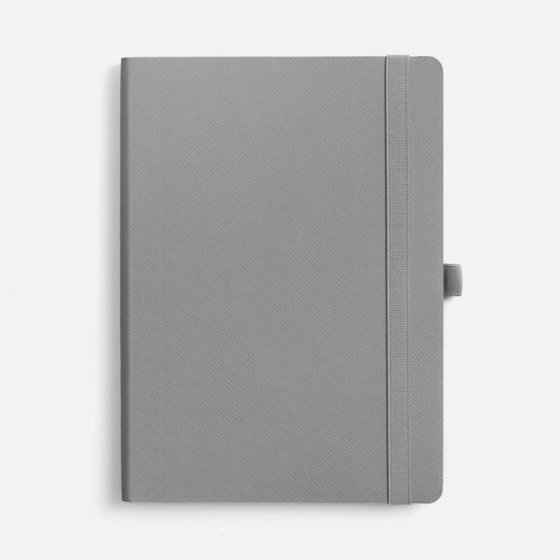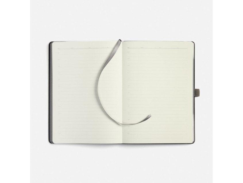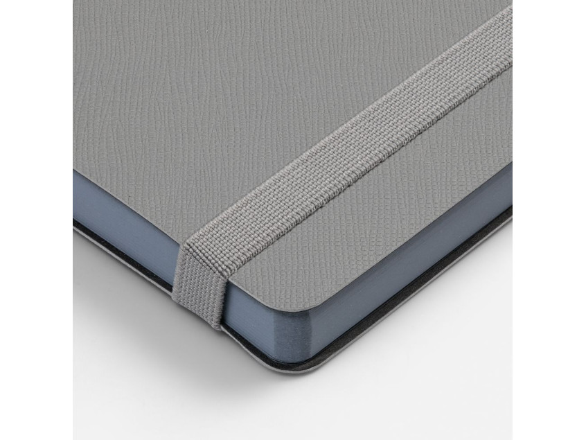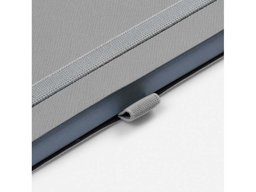 Ежедневник с гибкой обложкой, выполнен из материала Nice Touch, серый СС, дополнен цветными ляссе и петлей-резинкой для ручки.