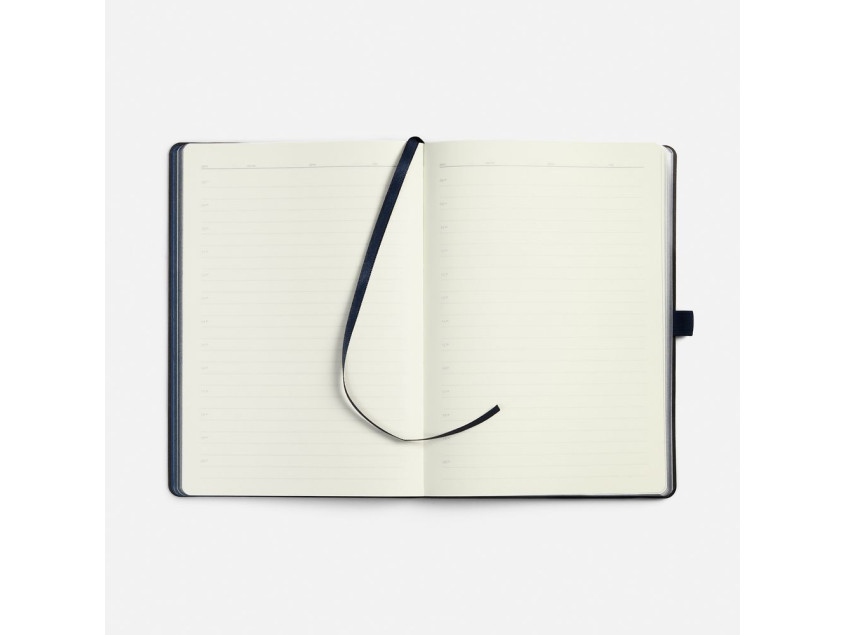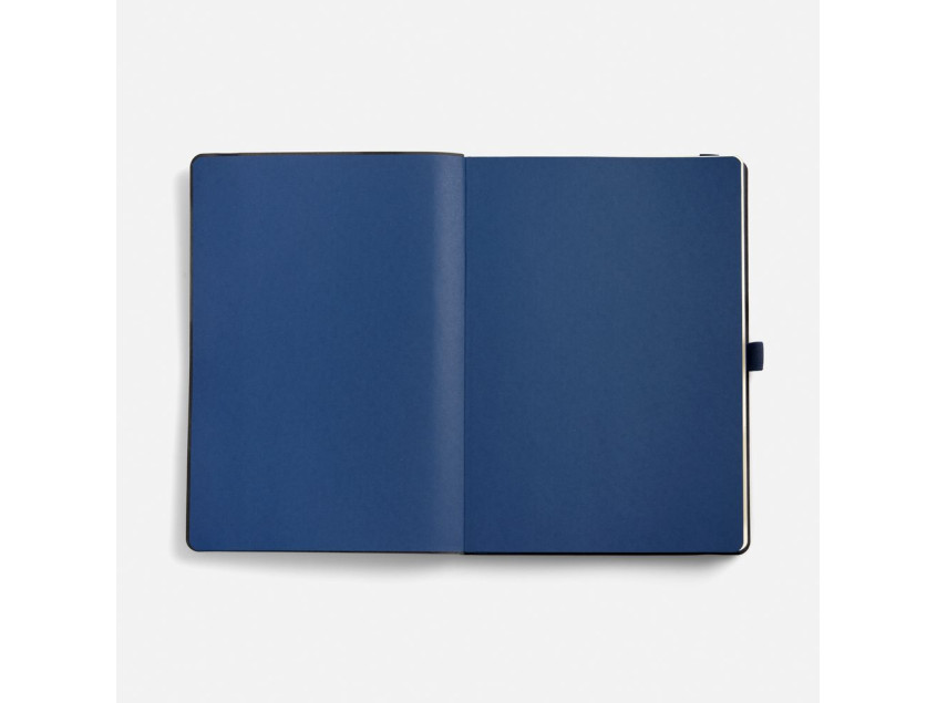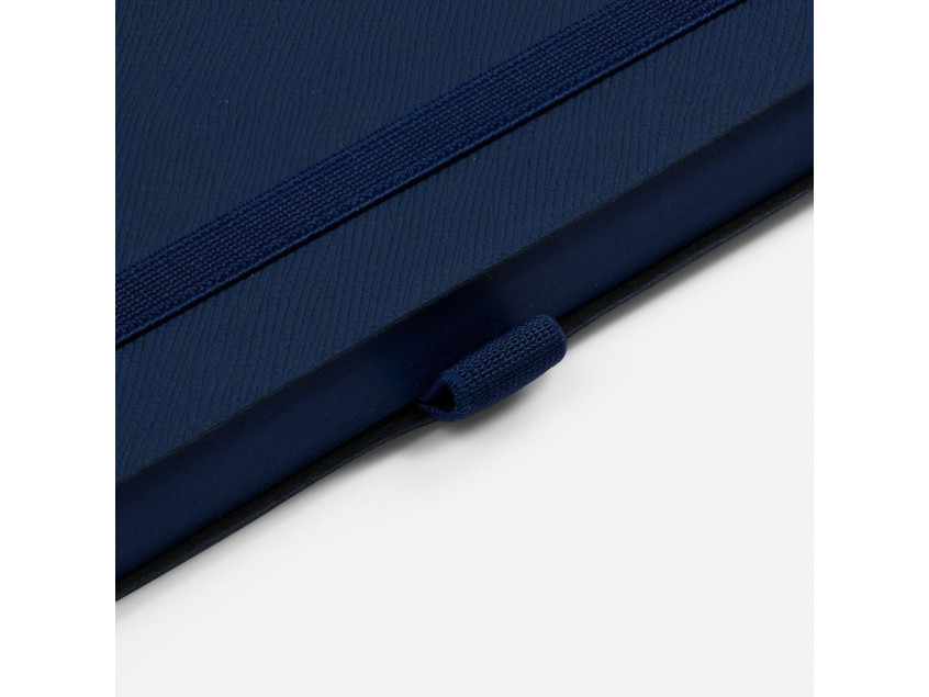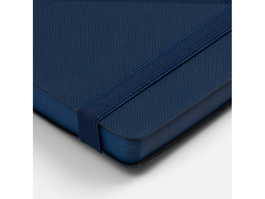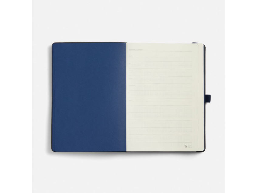 Ежедневник с гибкой обложкой, выполнен из материала Nice Touch, темно-синий ХХ, дополнен цветными ляссе и петлей-резинкой для ручки.
