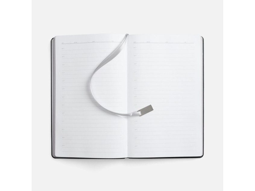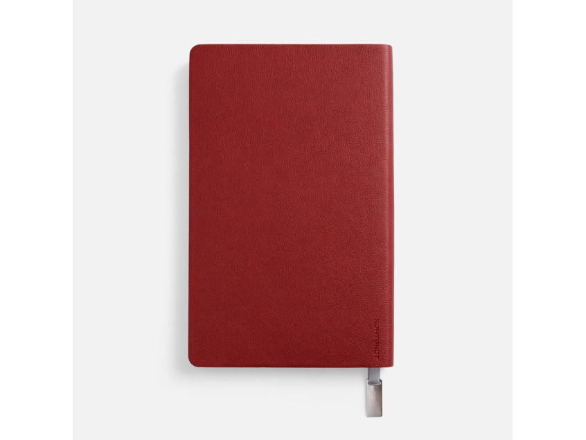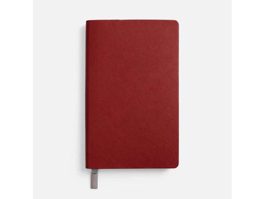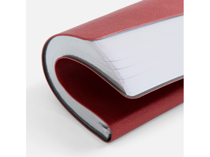Ежедневник с гибкой обложкой, выполнен из материала Petrus, красный РР, дополнен серым ляссе с металлическим шильдиком.