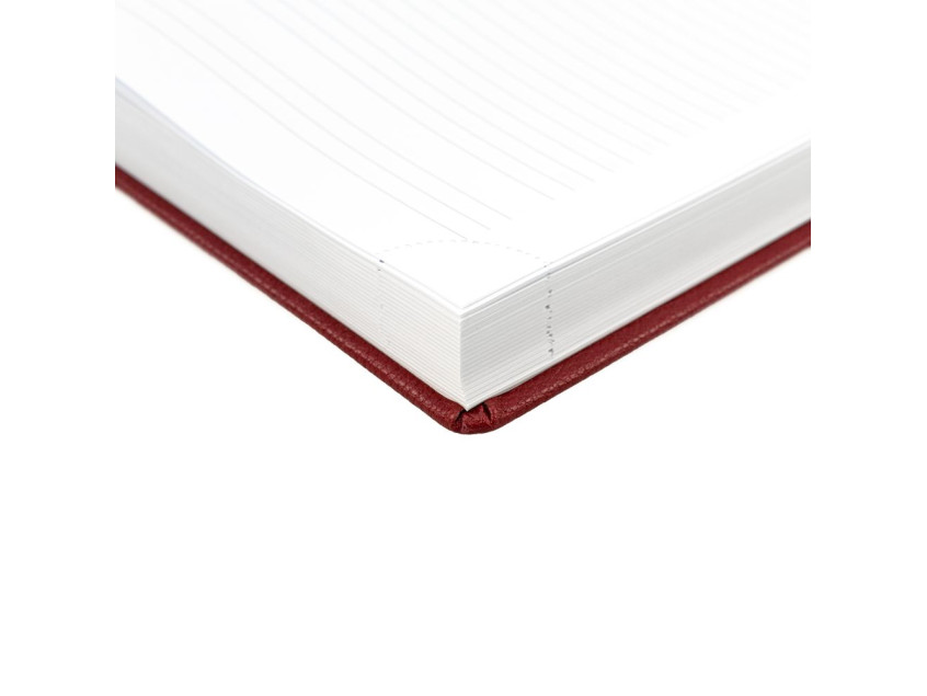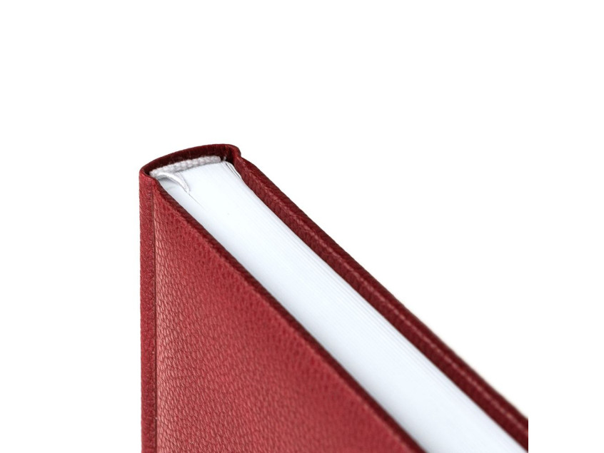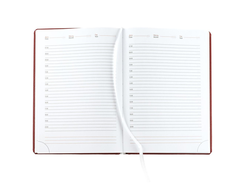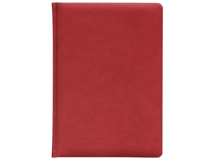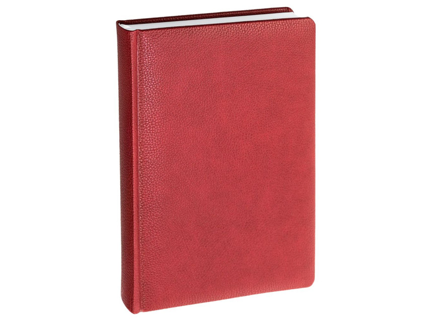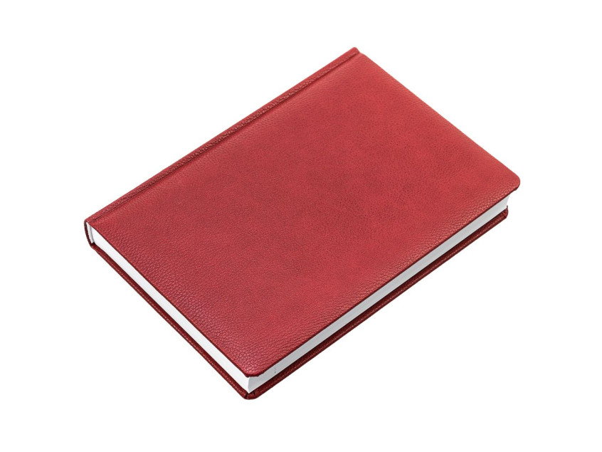 Ежедневник в твердой обложке c поролоном, выполнен из материала La Fite, красный РР, дополнен ляссе белого цвета.