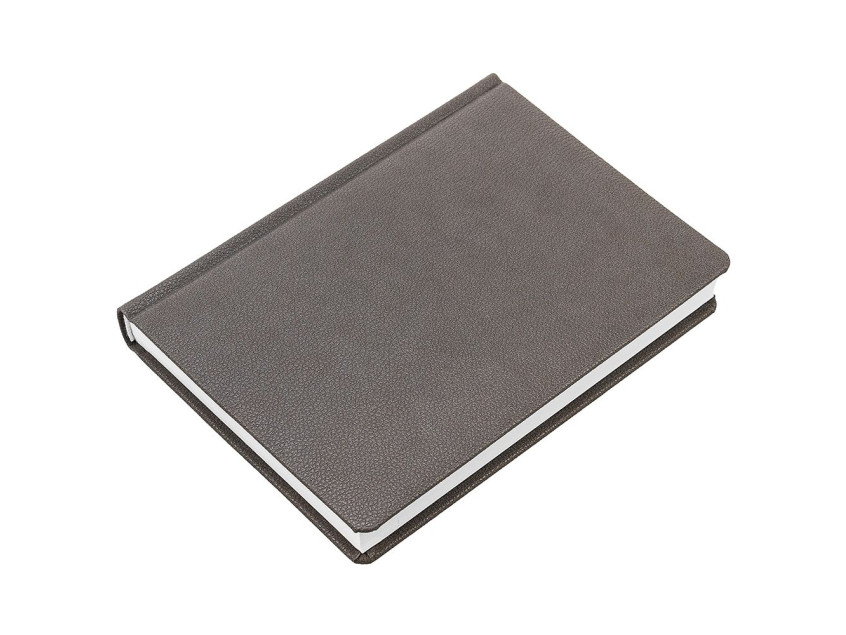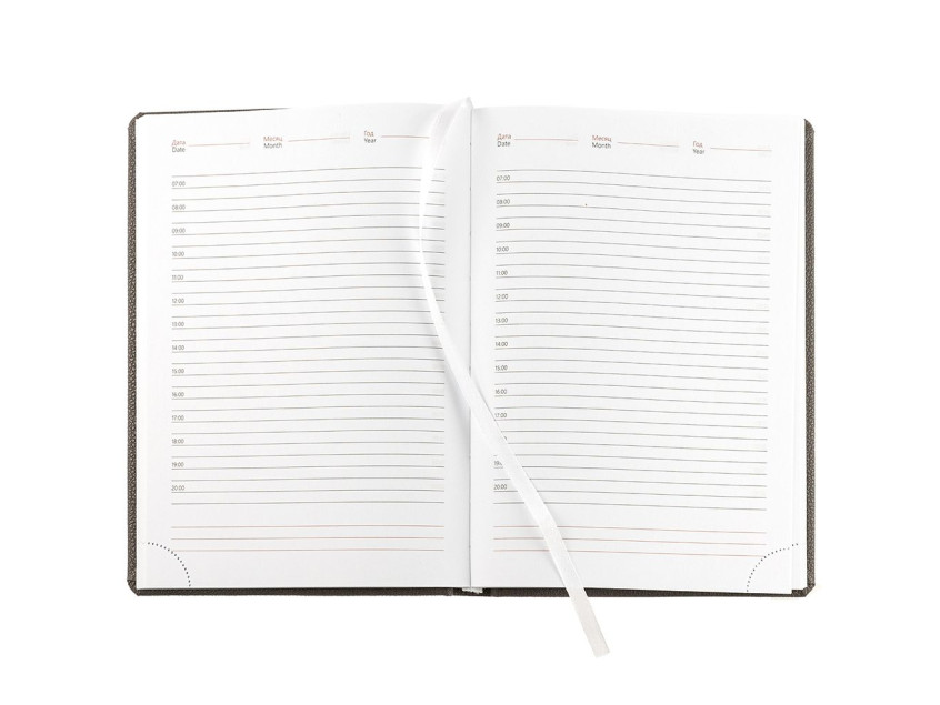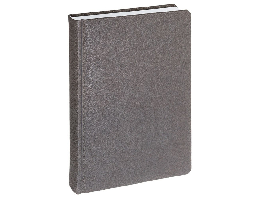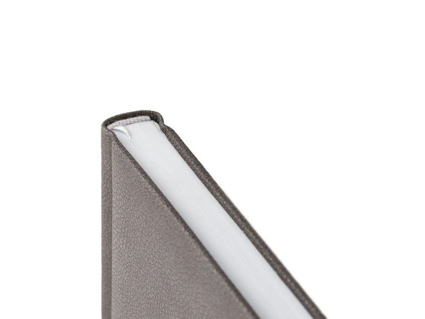 Ежедневник в твердой обложке c поролоном, выполнен из материала La Fite, темно-серый EE, дополнен ляссе белого цвета.