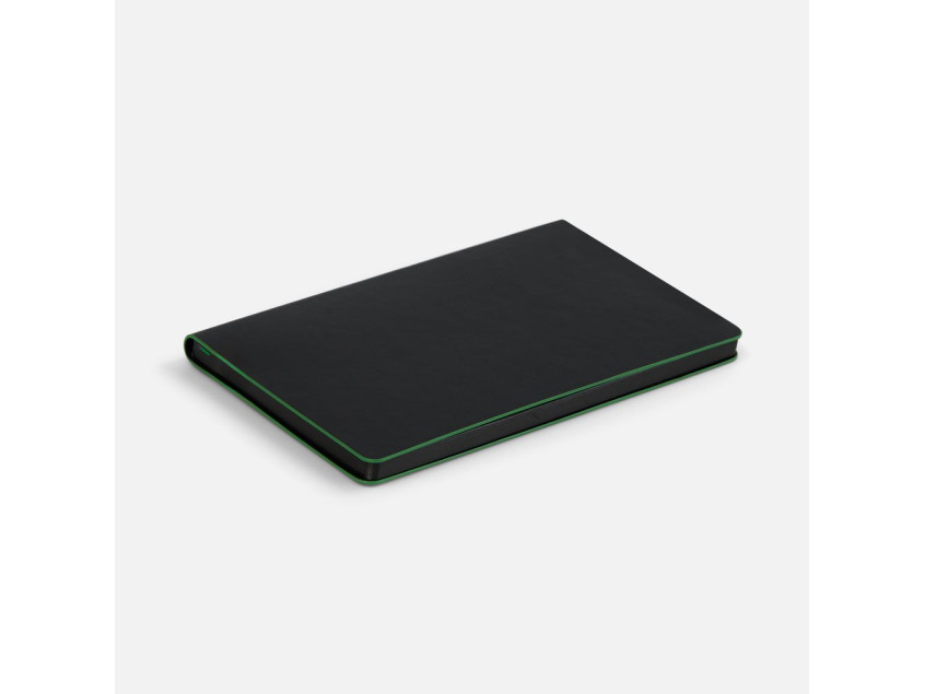 Обложка ежедневника Trait — это максимальная концентрация черного, подчеркнутая яркой полосой цветного среза.