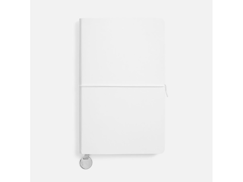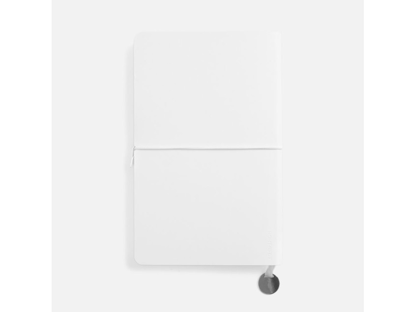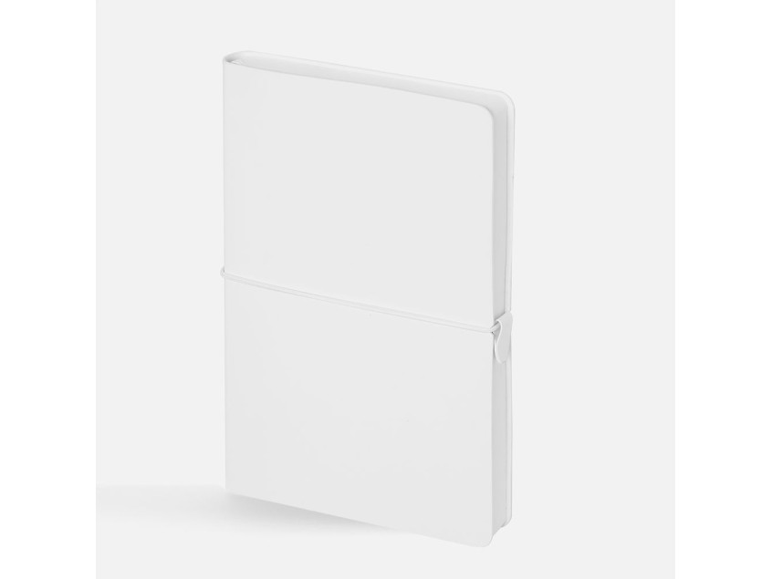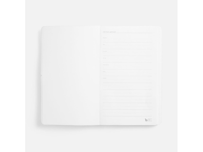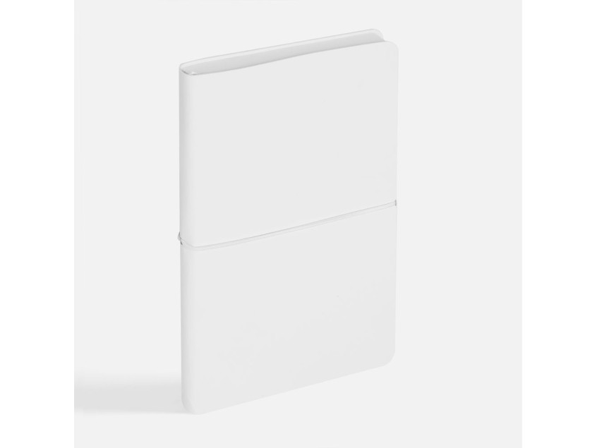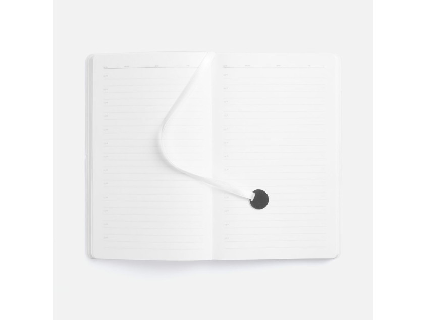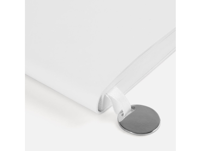 Ежедневник с гибкой обложкой, выполнен из материала Waltz, белый BB, дополнен ляссе в цвет обложки с металлическим шильдом.