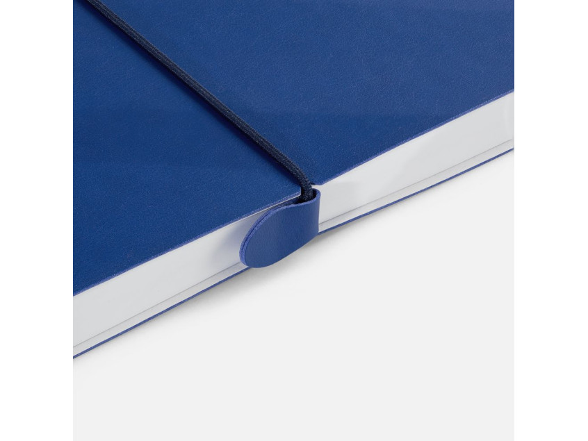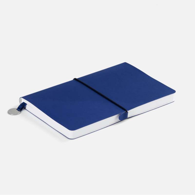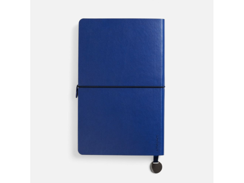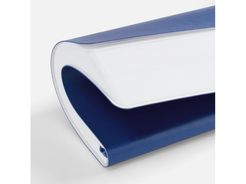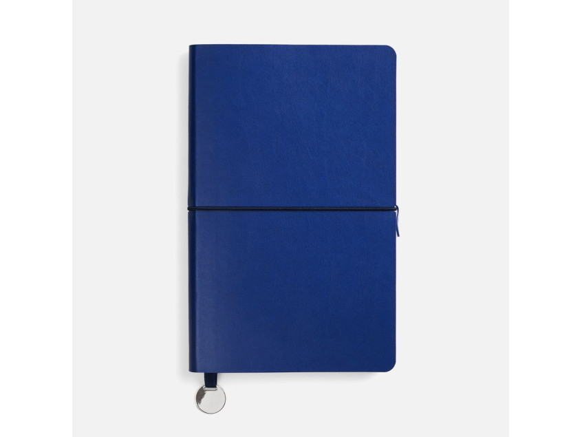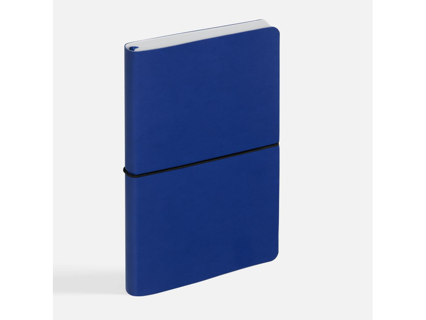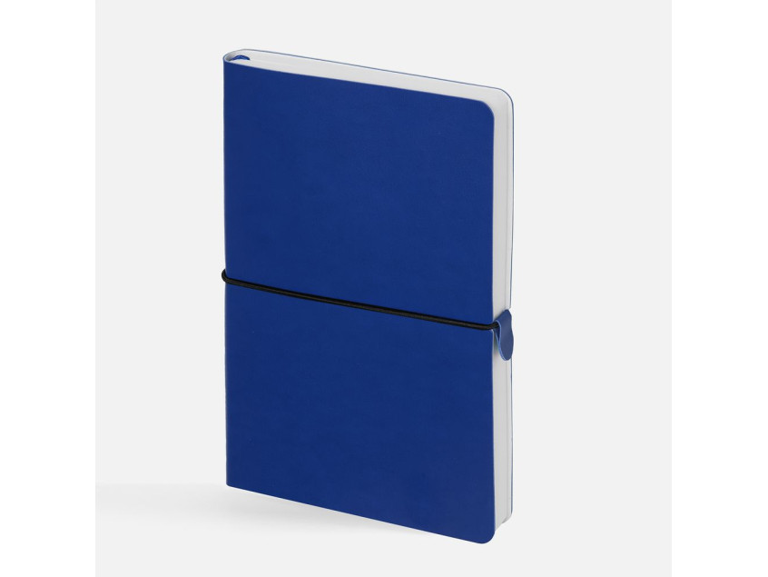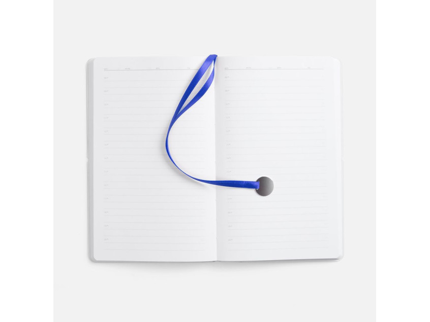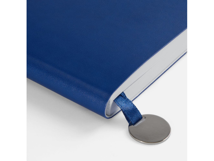 Ежедневник с гибкой обложкой, выполнен из материала Waltz, синий НН, дополнен ляссе в цвет обложки с металлическим шильдом.