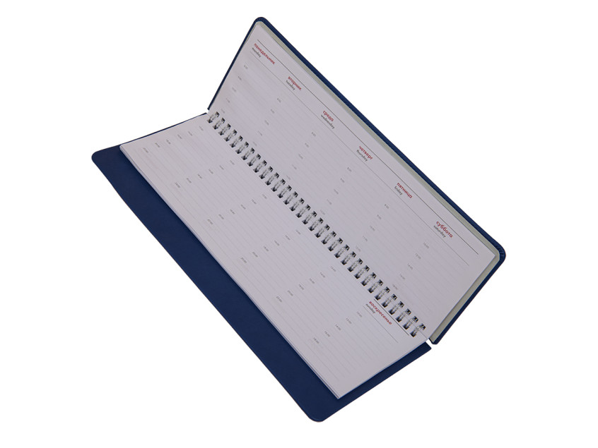 Цвет обложки, близкий к пантону 534C Размер 140*300 мм Переплет твердый, на металлической спирали, прошивка по периметру верхней обложки Обложка PU Velvet Блок недатированный, в линейку, прямые углы Бумага белая, плотность 70 г м2 Форзац нахзац серые 128 страниц Упаковка крафтовый сливбоксВ данный момент происходит смена справочной части блока. Внешний вид изделия остается без изменений.