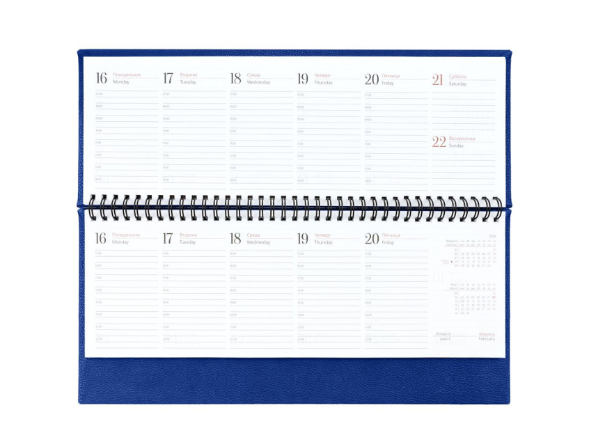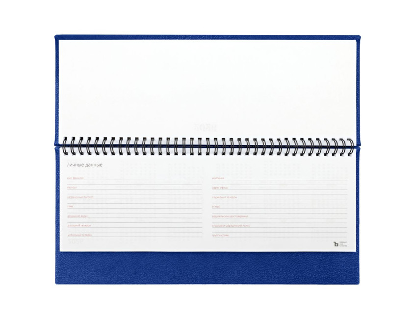 Планинг с твердой обложкой с поролоном, выполнен из материала La Fite, синий НН.