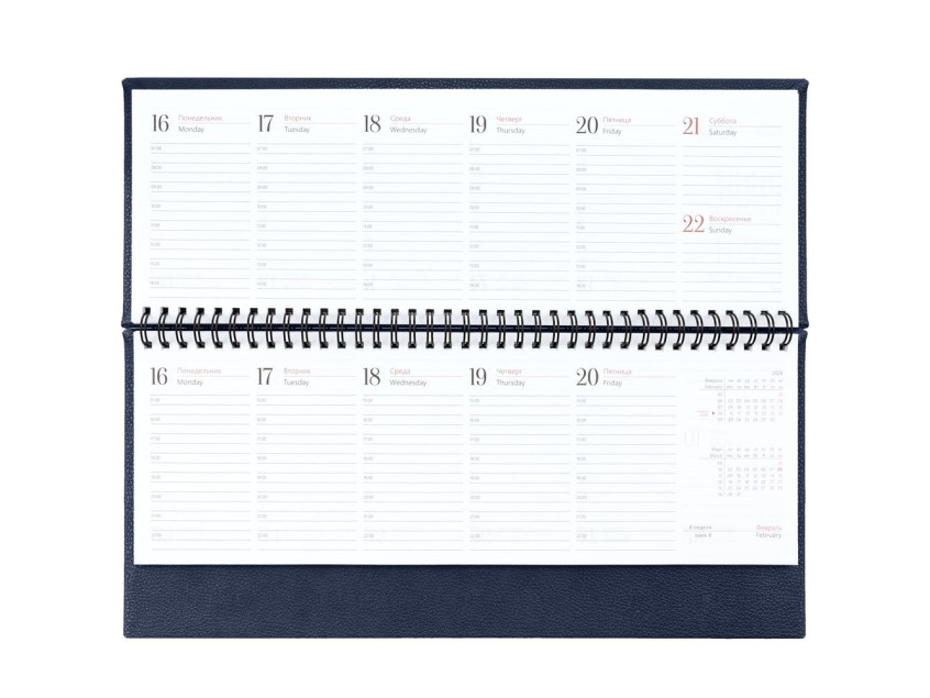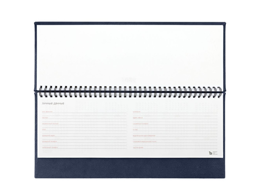 Планинг с твердой обложкой с поролоном, выполнен из материала La Fite, темно-синий ХХ.