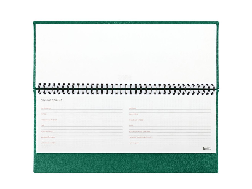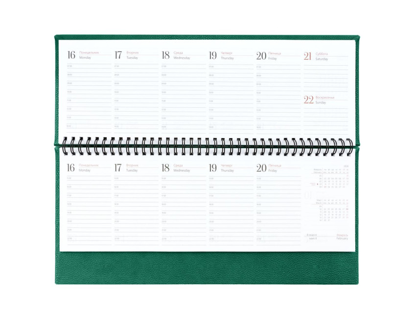 Планинг с твердой обложкой с поролоном, выполнен из материала La Fite, зеленый FF.