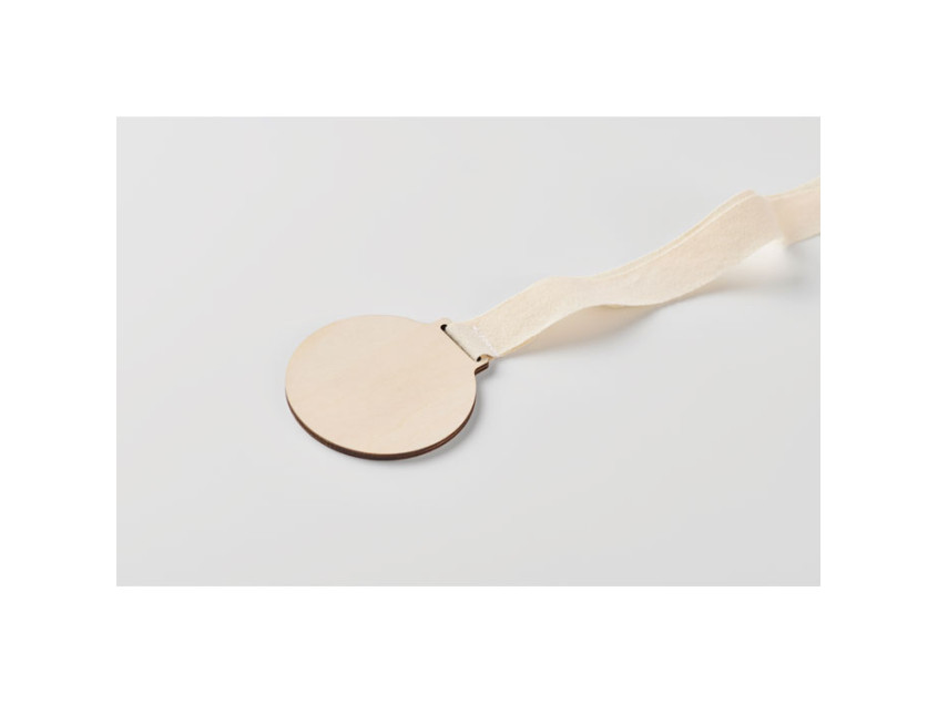 Деревянная медаль с хлопковым ремешком и пряжкой из пшеничной соломы и пластика.