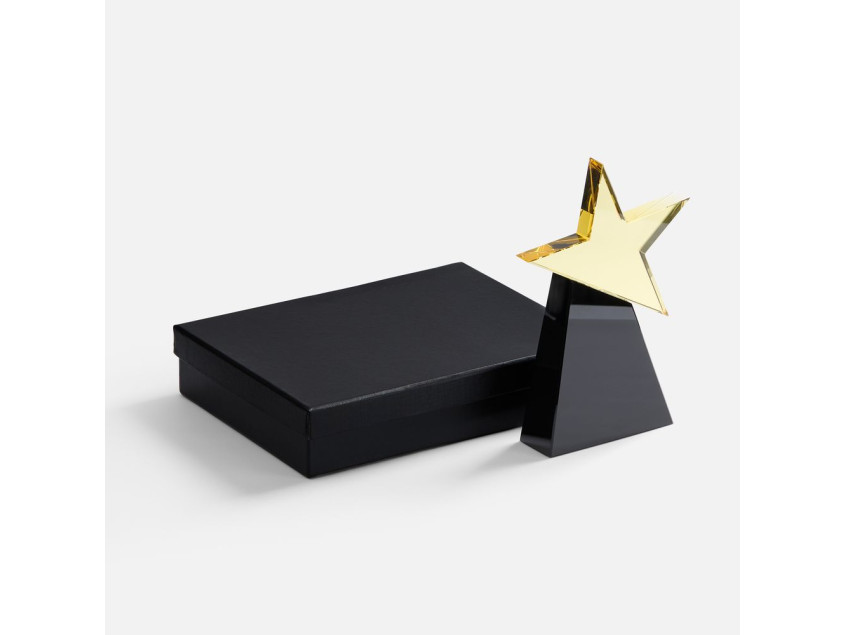 Переливающаяся золотистым блеском звезда подчеркнет статус награды и лидерские качества ее получателя. Внушительный постамент добавит основательности и устойчивости как доказательство того, что признанный успех — далеко не случайность.